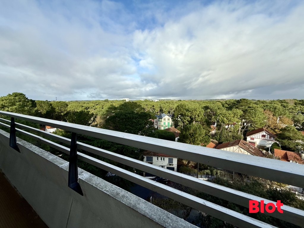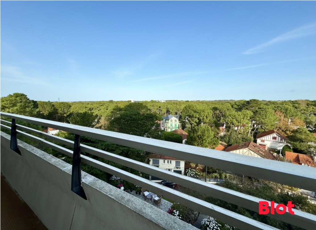 Vous profiterez également d'une agréable terrasse d'environ 8 m², idéale pour apprécier pleinement la vue sur les pins.