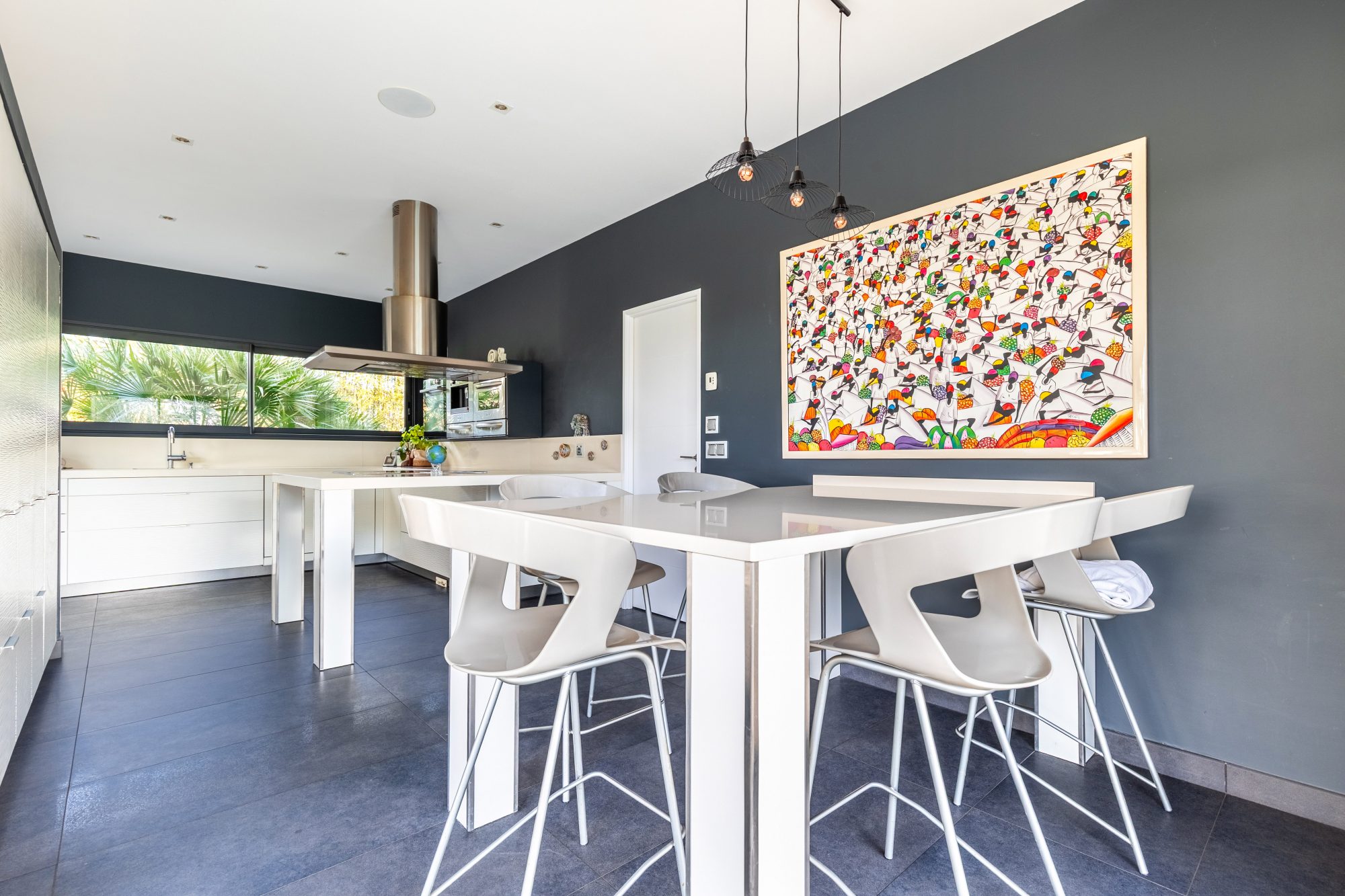 La cuisine aménagée et équipée haut gamme de 25m2, dotée d'un vaste îlot central avec son arrière cuisine est un véritable espace de vie, parfait pour les repas en famille ou entre amis.