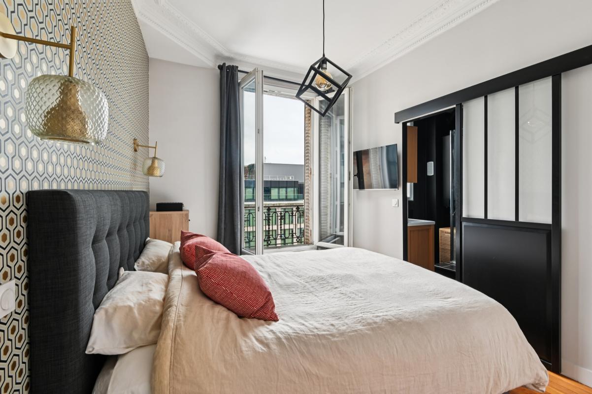 Un grand balcon laisse place à une vue spectaculaire sur la Seine et La Défense .