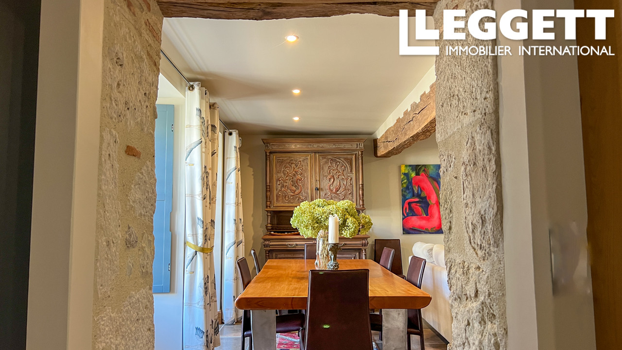 A41025GJP24 - Une propriété exceptionnelle du XVe siècle au coeur d'Eymet, méticuleusement rénovée entre 2018 et 2020 sous la supervision des Architectes des Bâtiments de France. Ancienne demeure du collecteur d'impôts de la ville, elle allie charme historique et luxe moderne, intégrant des éléments gothiques et baroques, une menuiserie en chêne artisanale et sur mesure, ainsi que des équipements de pointe.
