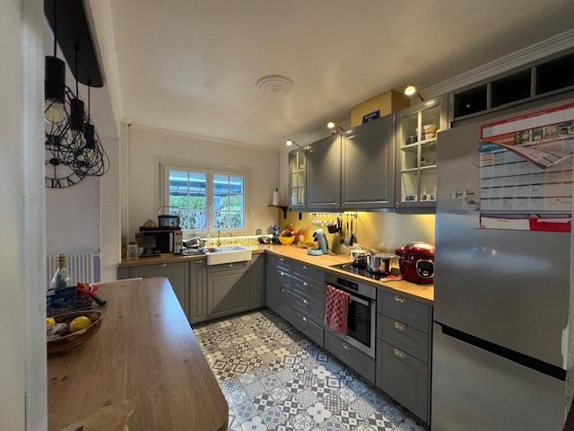 ESTREUX CENTRE, Pavillon individuel érigé en 1970, sur sous-sol complet (garage, chaufferie, buanderie, rangement) disposant au rez de chaussée, d'une entrée et dégagement, un salon parqueté avec CFB, une salle à manger, un séjour, une cuisine équipée et aménagée neuve, deux chambres, une salle de douche et wc. A l'étage, un palier avec rangement, une grande chambre, deux chambres mansardées, une salle de bain, un grenier de rangement. Jardin clos avec terrasse . Système de chauffage central par chaudière à pellets récente. L'avis du Pro: Belle situation géographique, environnement calme et agréable, idéale pour maison de famille !