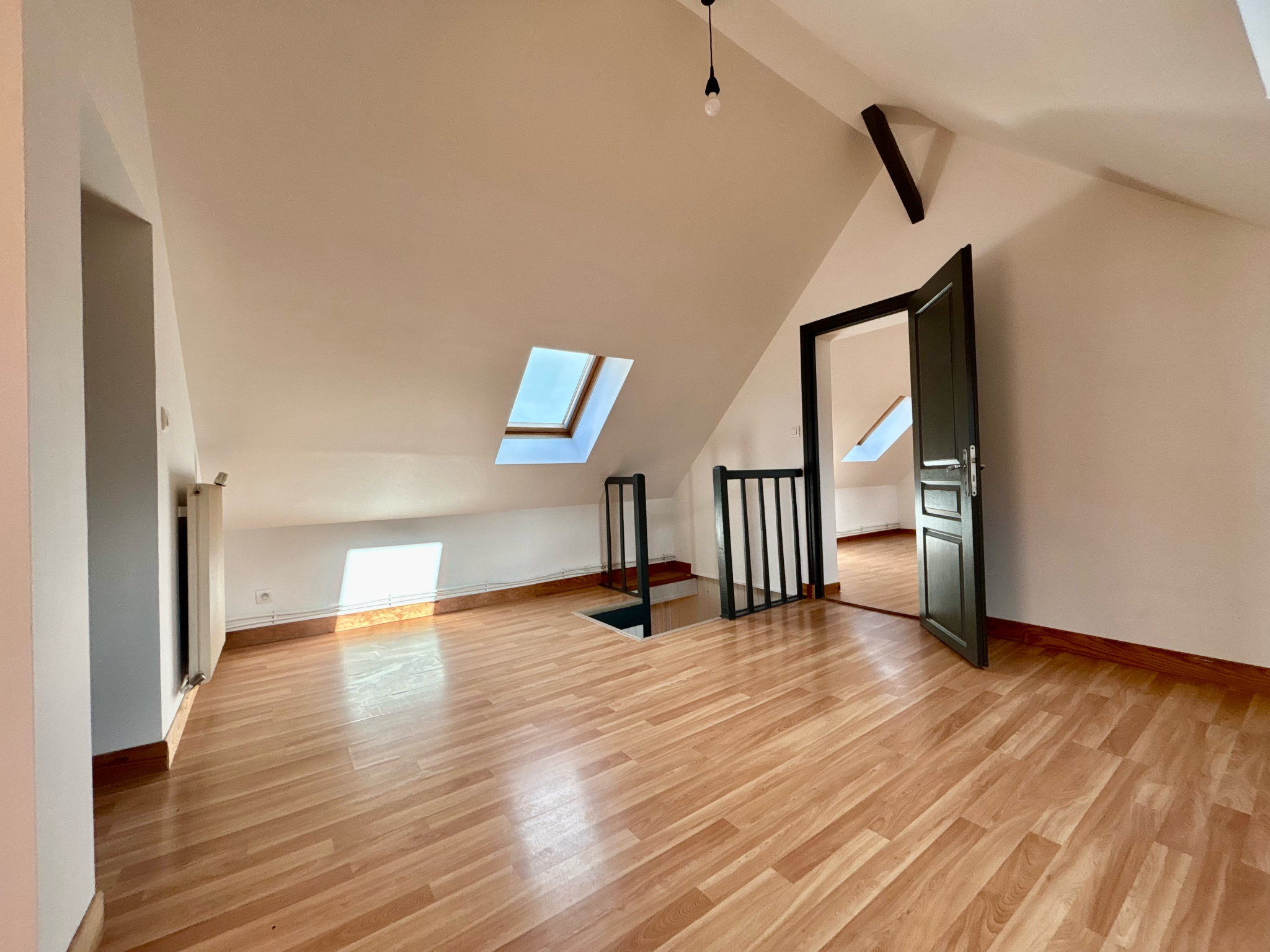 A l'étage palier de 8 m2 pouvant servir de bureau ou petite chambre, 2 grandes chambres, salle de bains avec toilette. Possibilité de faire 2 grandes chambres supplémentaires avec le grenier.