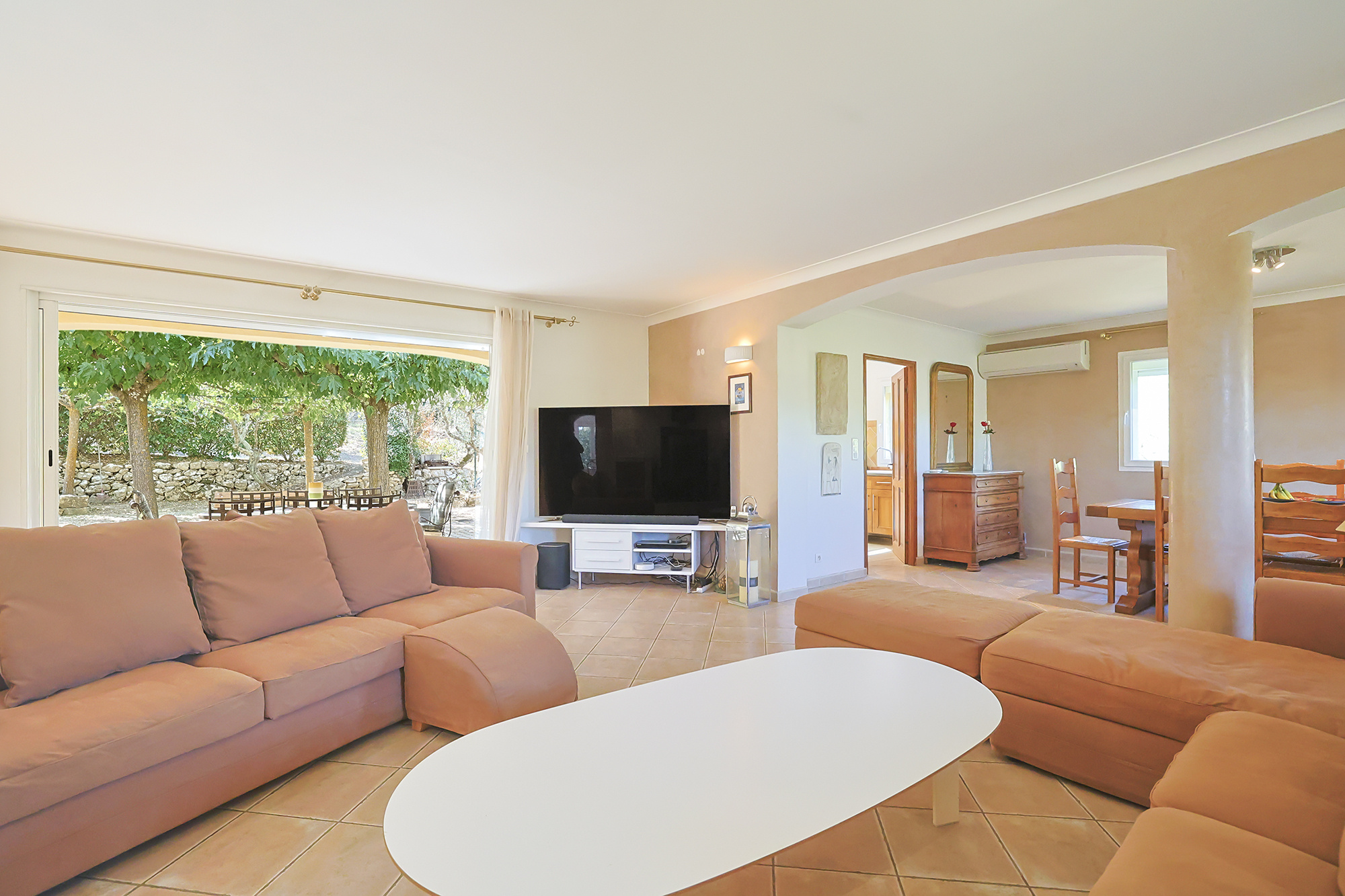 La villa est organisée en 2 logements (climatisés) de plain-pied, l'un dispose de 4 pièces (3 chambres) et l'autre de 3 pièces (2 chambres).