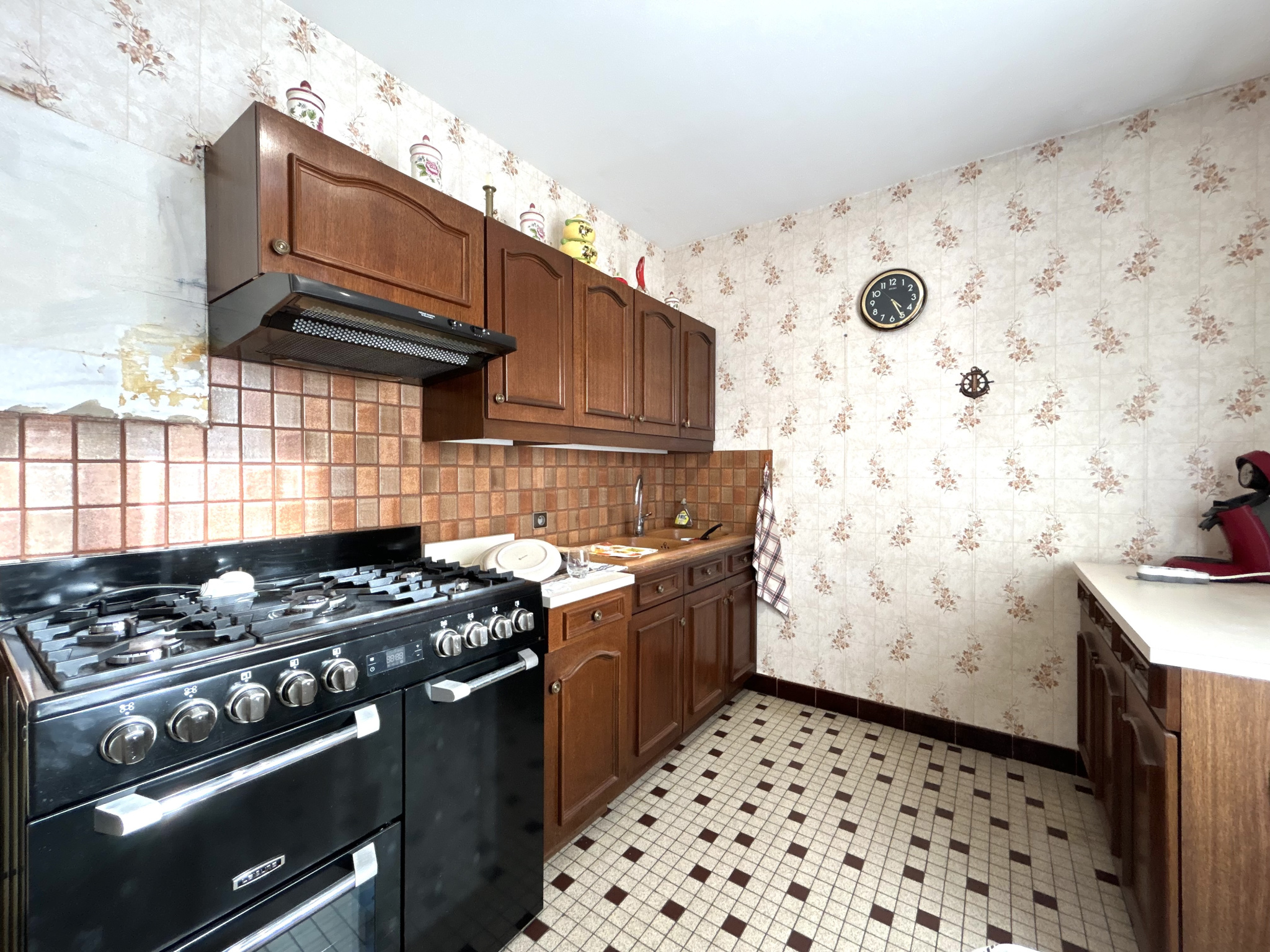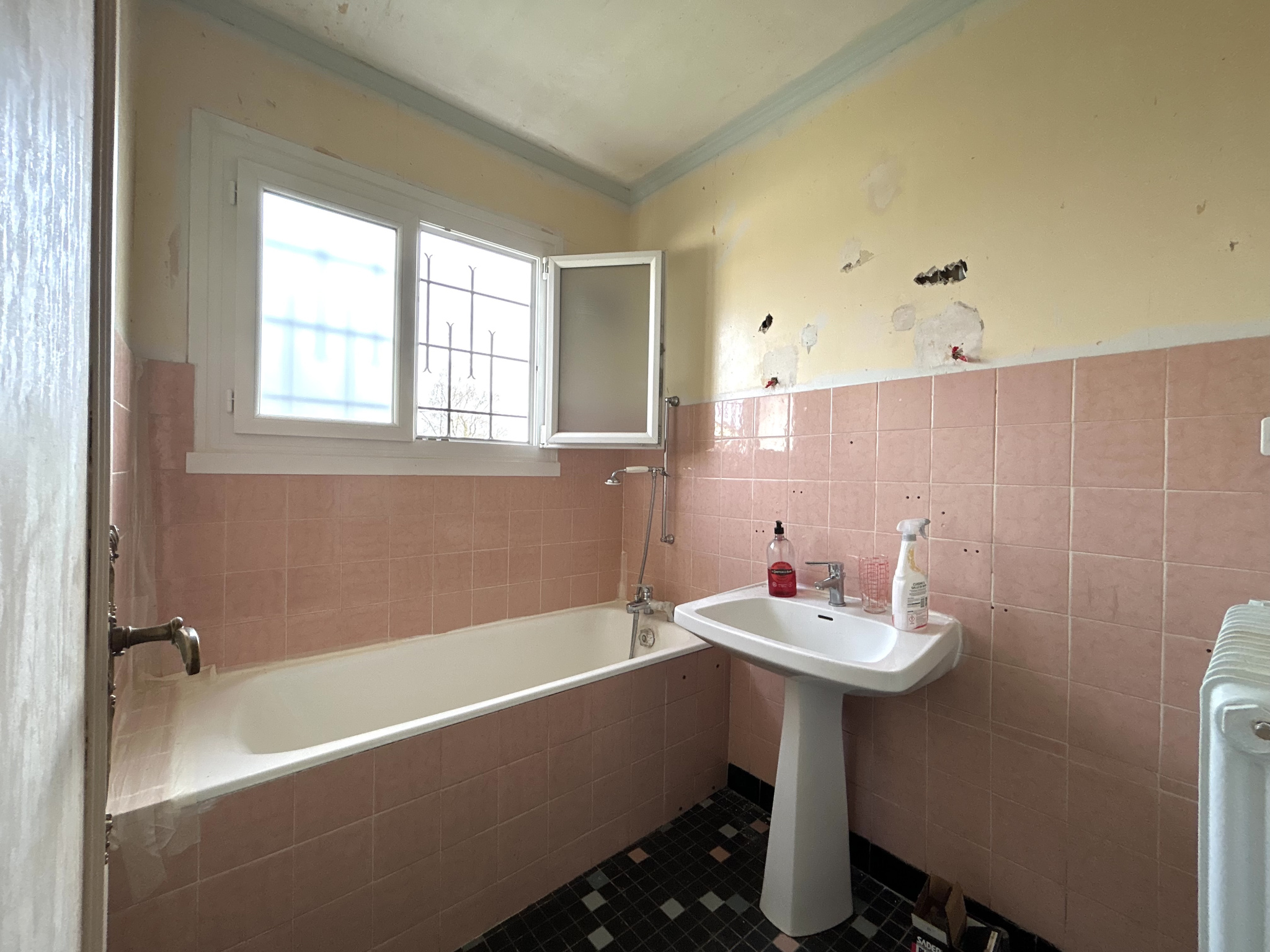 A l'étage, vous disposerez d'une vaste entrée desservant l'ensemble des pièces. Vous retrouverez un salon-séjour très lumineux avec sa double exposition ainsi qu'un accès à la terrasse, une cuisine séparée à rafraîchir, deux belles chambres et une salle de bains à moderniser et d'un WC séparé.