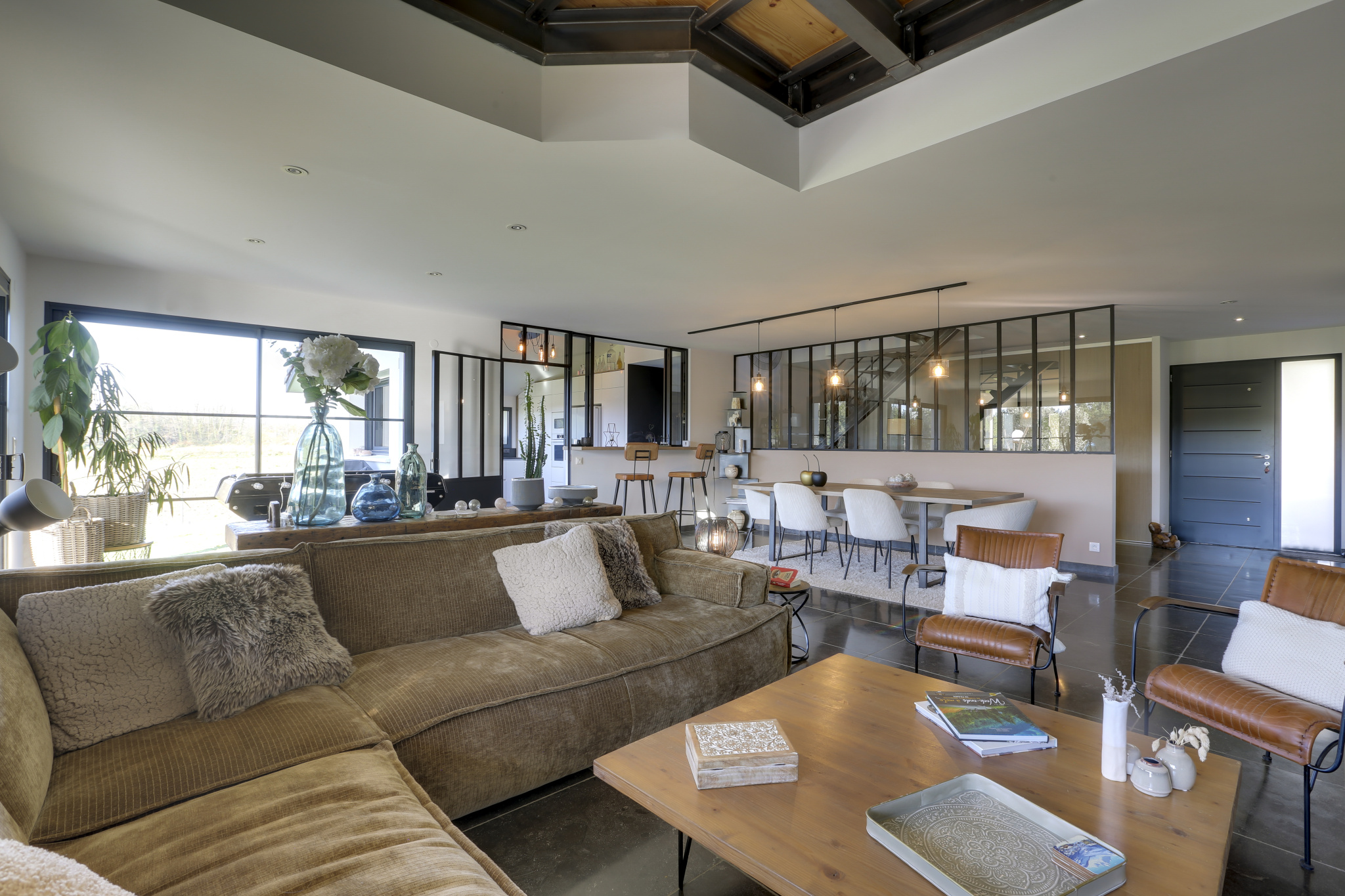 La lumière y règne en maître grâce à son orientation plein sud et plein ouest, mettant en scène une piscine baignée de soleil tout au long de la journée et des couchers de soleil d'une beauté saisissante. L'espace intérieur se déploie avec une grande fluidité : une suite parentale de plain-pied apporte confort et intimité, tandis qu'un vaste salon de 65 m2, largement ouvert vers l'extérieur, compose le coeur lumineux de la maison. La cuisine, généreuse et conviviale, se prolonge d'une buanderie et d'un cellier parfaitement intégrée, et un large garage complète l'ensemble.