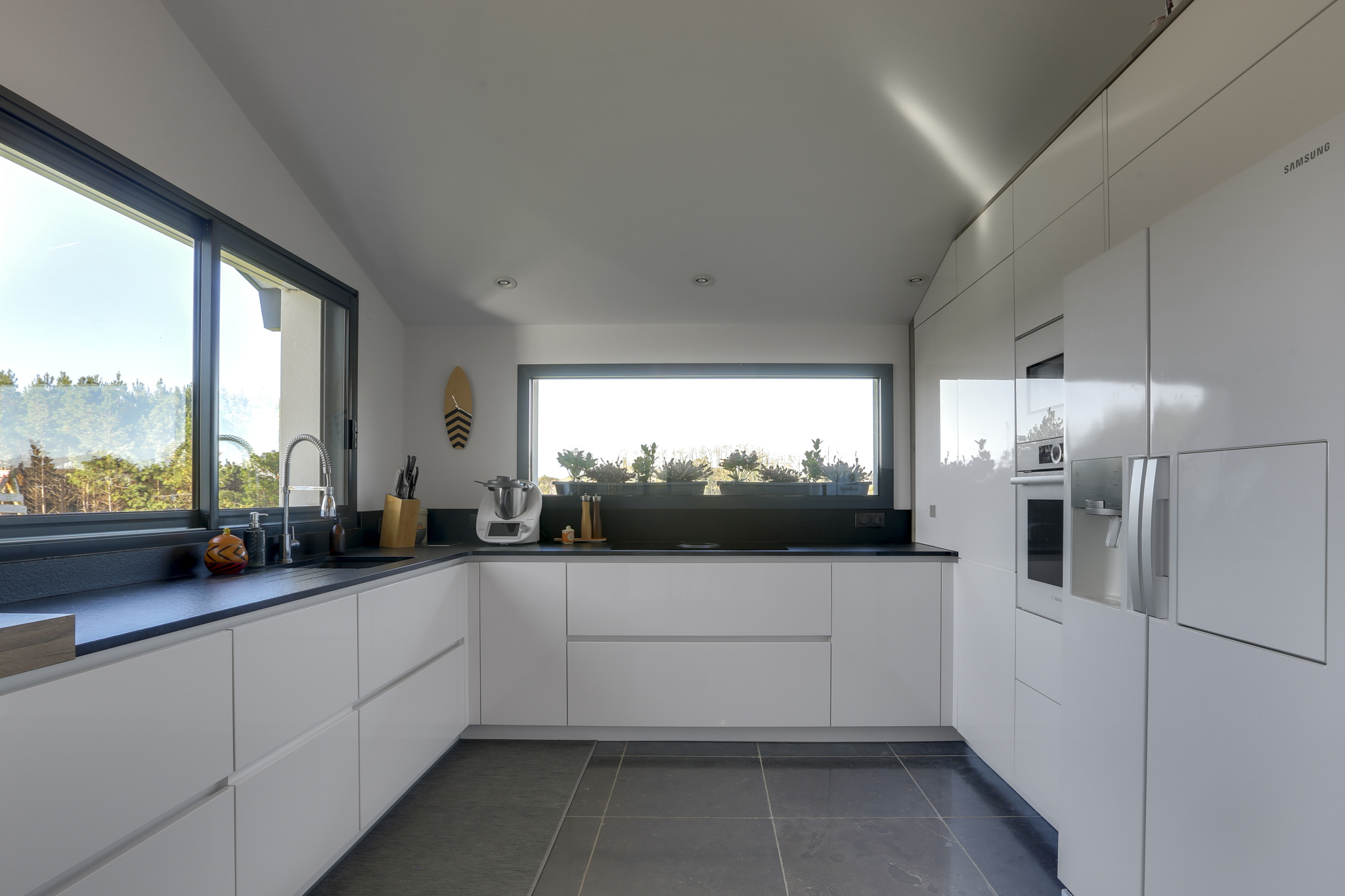 L'atmosphère sereine du secteur souligne encore la douceur du lieu et l'harmonie entre l'architecture contemporaine et la nature environnante.