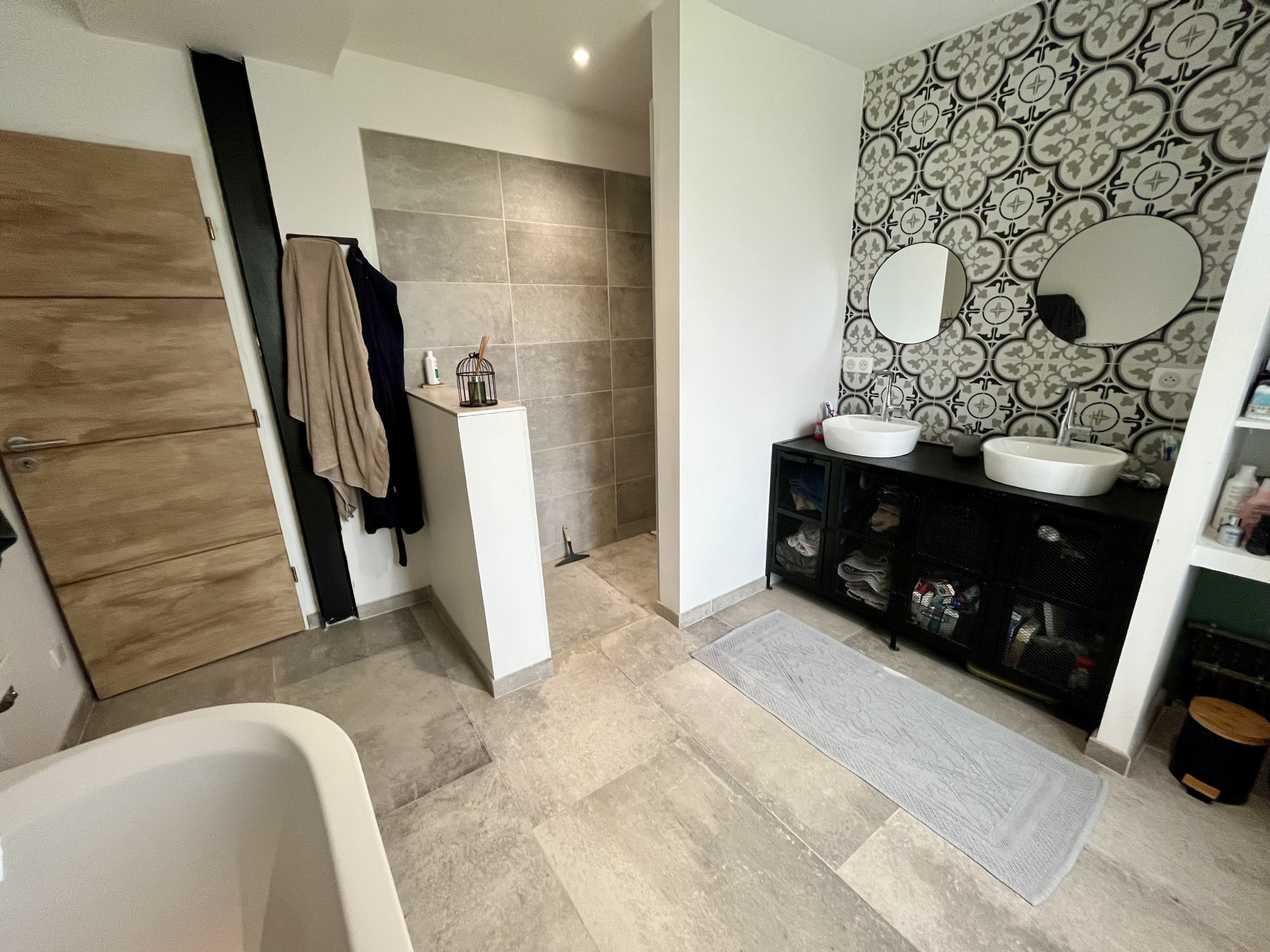 Une salle de bains moderne avec baignoire + douche à l'italienne,