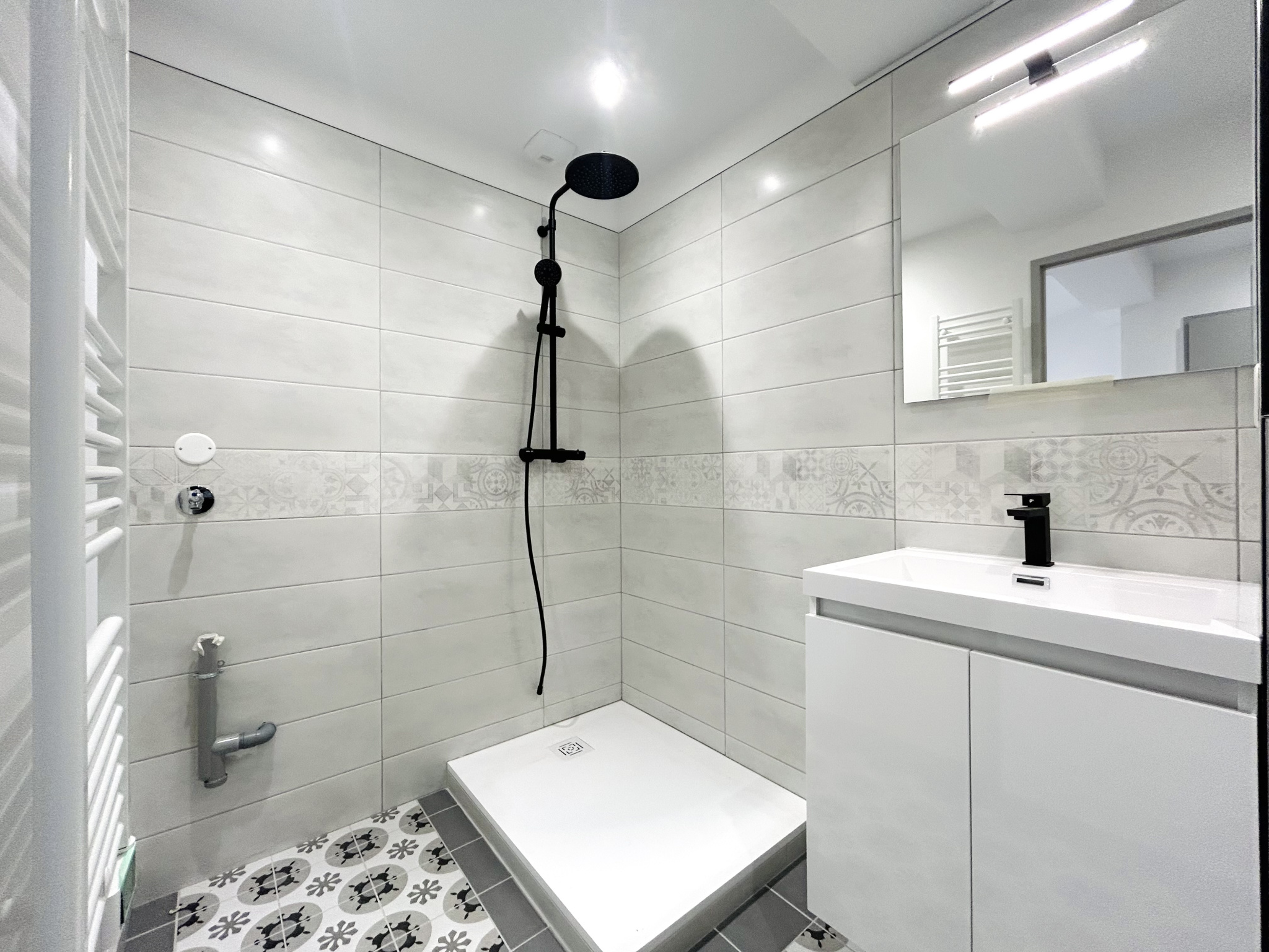 Cet appartement contemporain se compose d'une entrée avec rangements, d'un salon-séjour très lumineux, d'une cuisine entièrement équipée et aménagée ouverte sur la pièce de vie, d'une grande chambre avec rangements et d'une salle d'eau moderne avec WC.