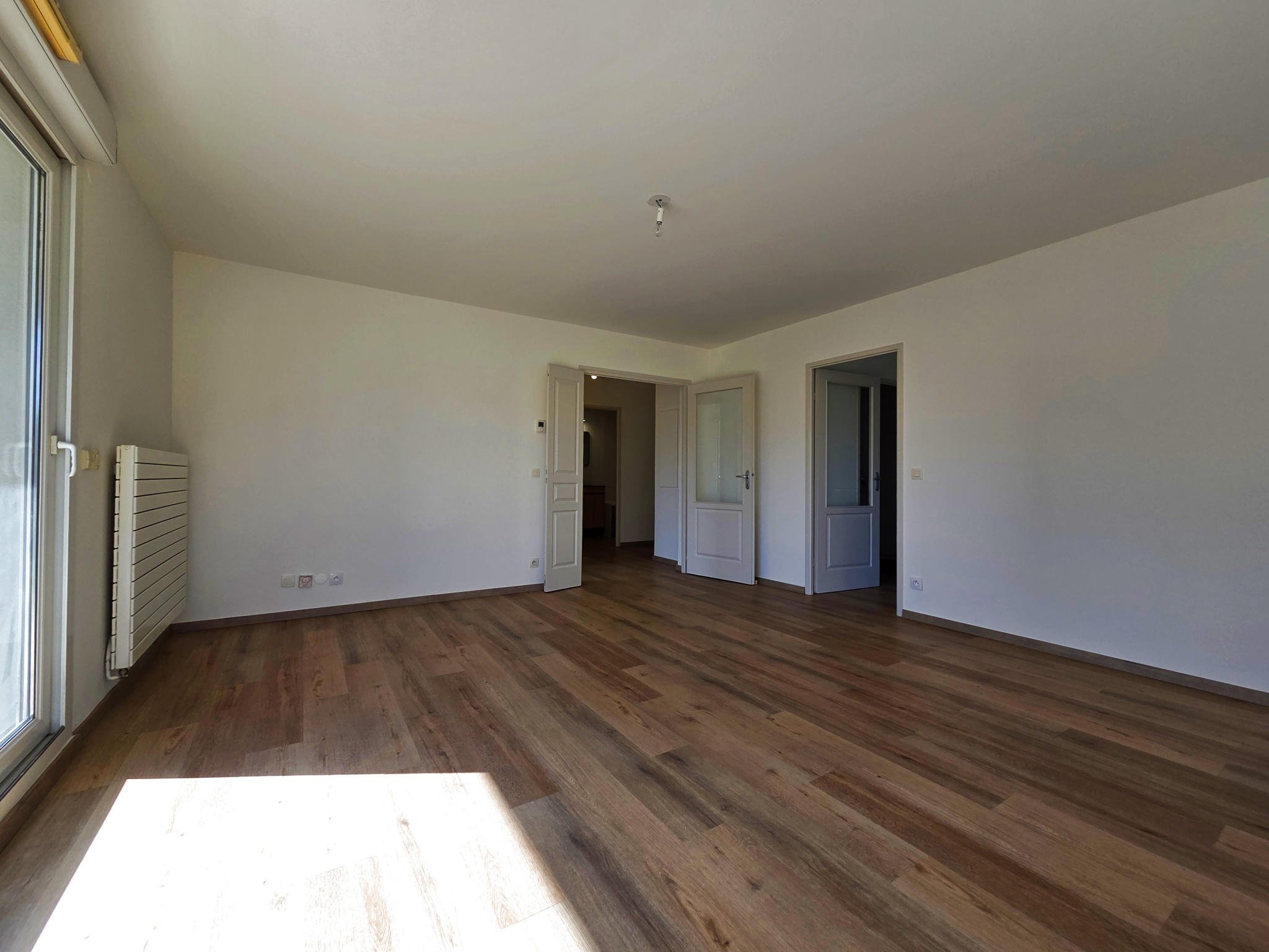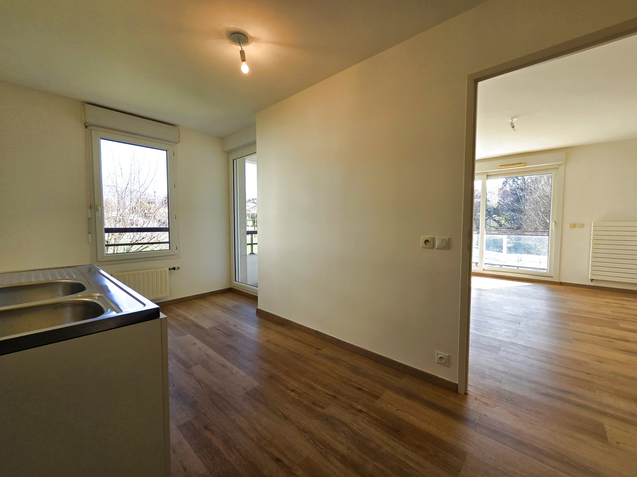 VILLE-LA-GRAND - Dans une résidence de bon standing de 2004 proche du centre-ville et ses commerces - Lumineux T2 entièrement rénové expo Sud-Est d'une surface loi Carrez de 55.74 m2 - Cet appartement se compose d'une entrée avec placard penderie, d'un Wc indépendant, d'une salle de bains, d'un beau séjour donnant accès au grand balcon, cuisine indépendante ouvrable sur le séjour pour faire une magnifique pièce ouverte, cellier, chauffage individuel gaz - Box garage en sous-sol et parking copro fermé par barrière - DPE : C