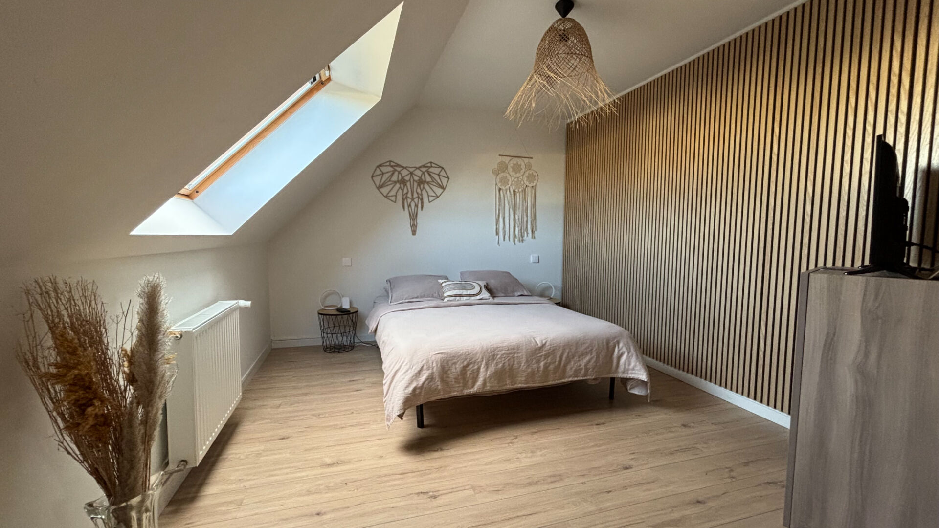 Enfin, retrouvez deux jolies chambres avec mur phonique, une belle salle de bain double vasque et un espace bureau pouvant parfaitement être employée en chambre.