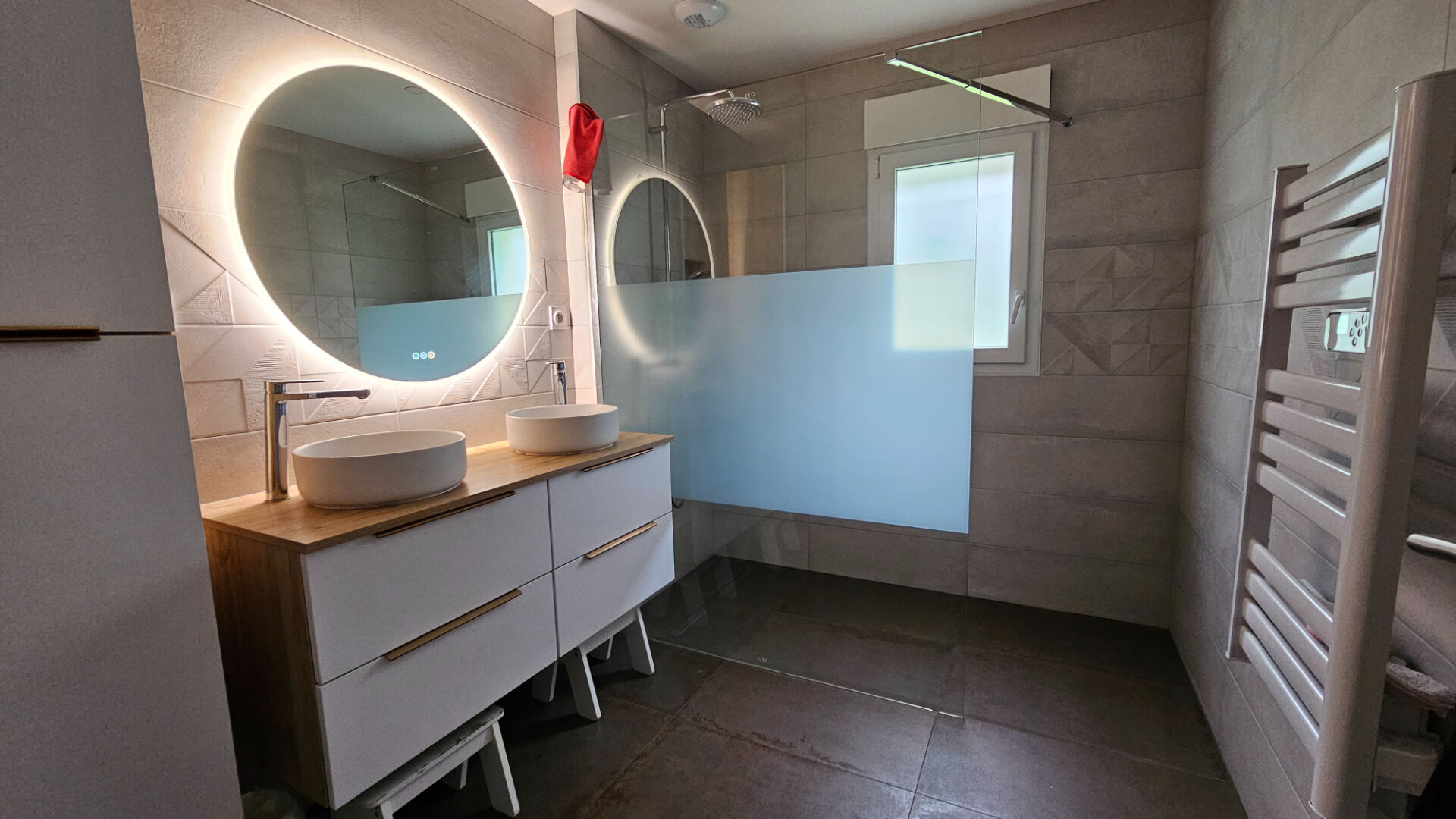 Excellent diagnostic énergétique grâce aux changement des menuiseries (PVC double vitrage + volets roulants électriques) et du remplacement des convecteurs par une pompe à chaleur air-air.