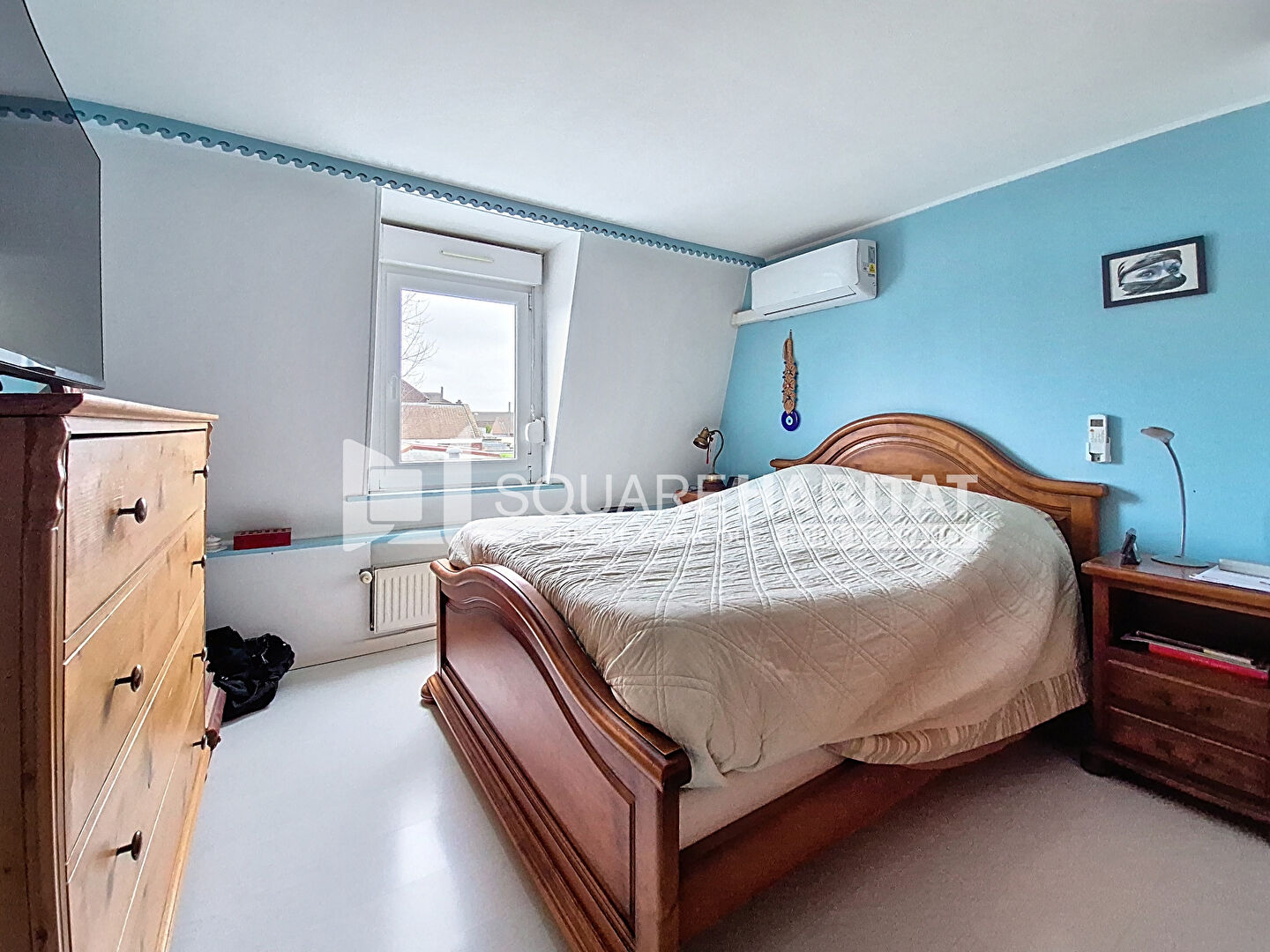 Au second : une grande chambre aménagée dans les combles.