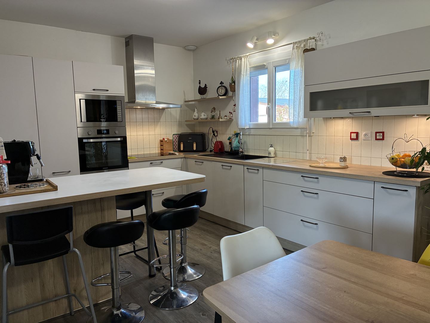 Une belle pièce de vie avec sa cuisine ouverte , un couloir qui dessert les quatres chambres , sa sde ,ses wc et la buanderie avec accés sur l'extérieur