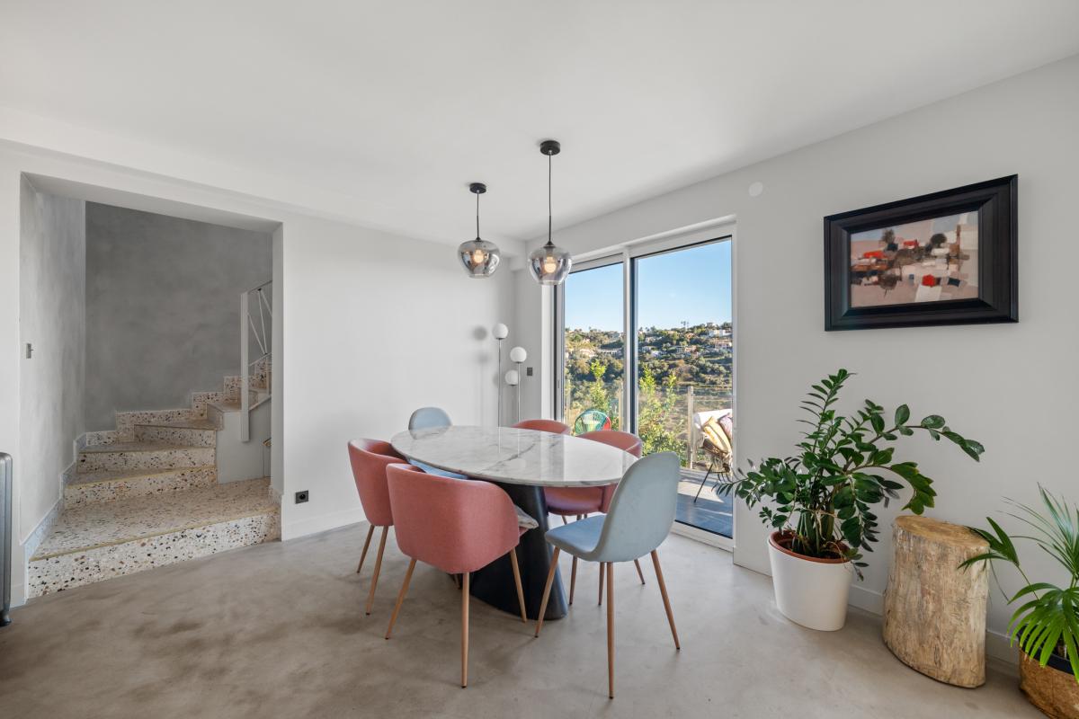 Organisée sur trois niveaux, elle propose une pièce de vie baignée de lumière, ouverte sur une grande terrasse, avec une cuisine semi-ouverte qui crée une agréable continuité entre intérieur et extérieur.