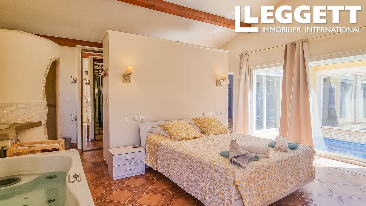 La maison principale séduit par ses espaces de réception ouverts et lumineux : cuisine moderne, salons raffinés, salle de billard et salle de sport. L'espace nuit comprend 4 chambres dont 3 suites parentales avec salles de bains privatives dont une principale avec jacuzzi et vue sur la piscine intérieure.