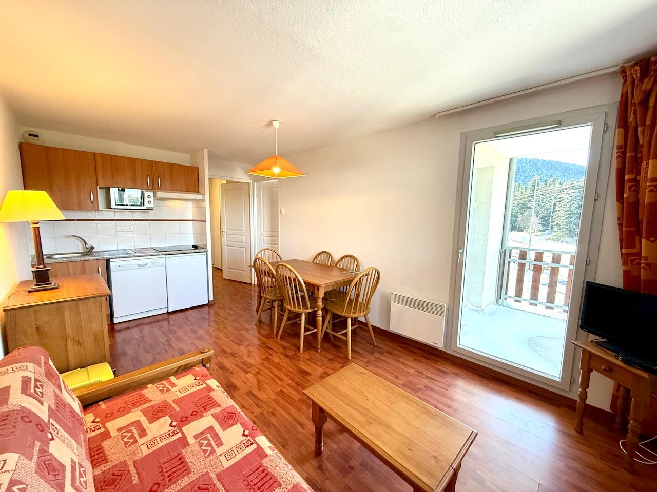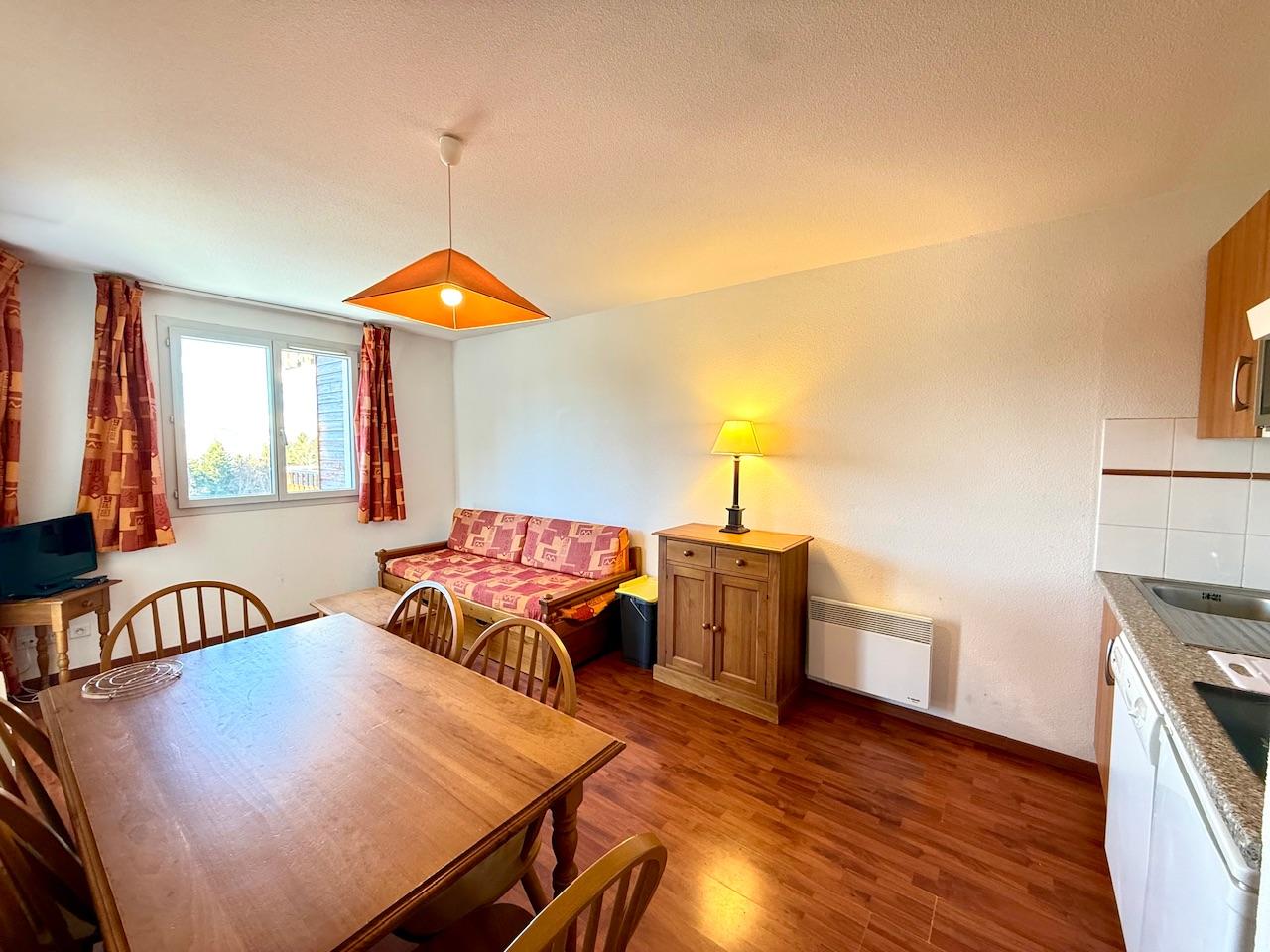 AX 3 DOMAINES, Appartement T2 + cabine de 36.5 m² situé dans une résidence de 54 lots principaux comprenant entrée, coin nuit avec placard, séjour-cuisine donnant sur terrasse, chambre avec placard et accès terrasse, salle de bains et wc séparés. Exposition Ouest, vendu SANS BAIL, meublé et avec casier à skis. Piscine intérieure avec sauna. Charges courantes/an : 2 568 € COMPRENANT les consommations d'EAU et d'ELECTRICITE. Honoraires à la charge du vendeur. Montant estimé des dépenses annuelles d'énergie pour un usage standard : entre 820 et 1 140 euros. Prix moyens des énergies indexés en 2022.