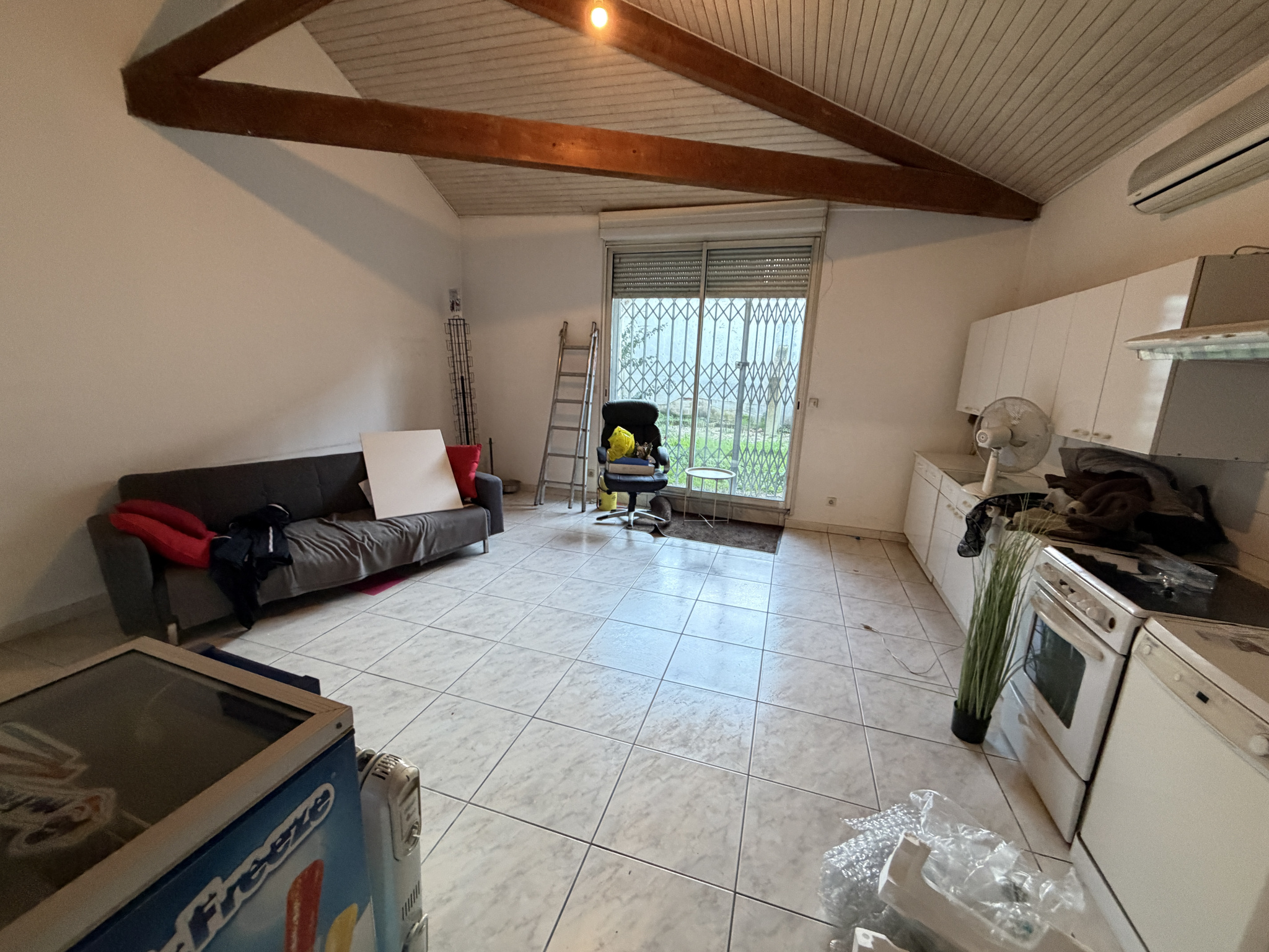 Composition : Au rez-de-chaussée : entrée, pièce de vie de 27 m2 avec accès à un jardin de 30 m2, climatisation réversible. À l'étage : couloir, deux grandes chambres, salle d'eau.