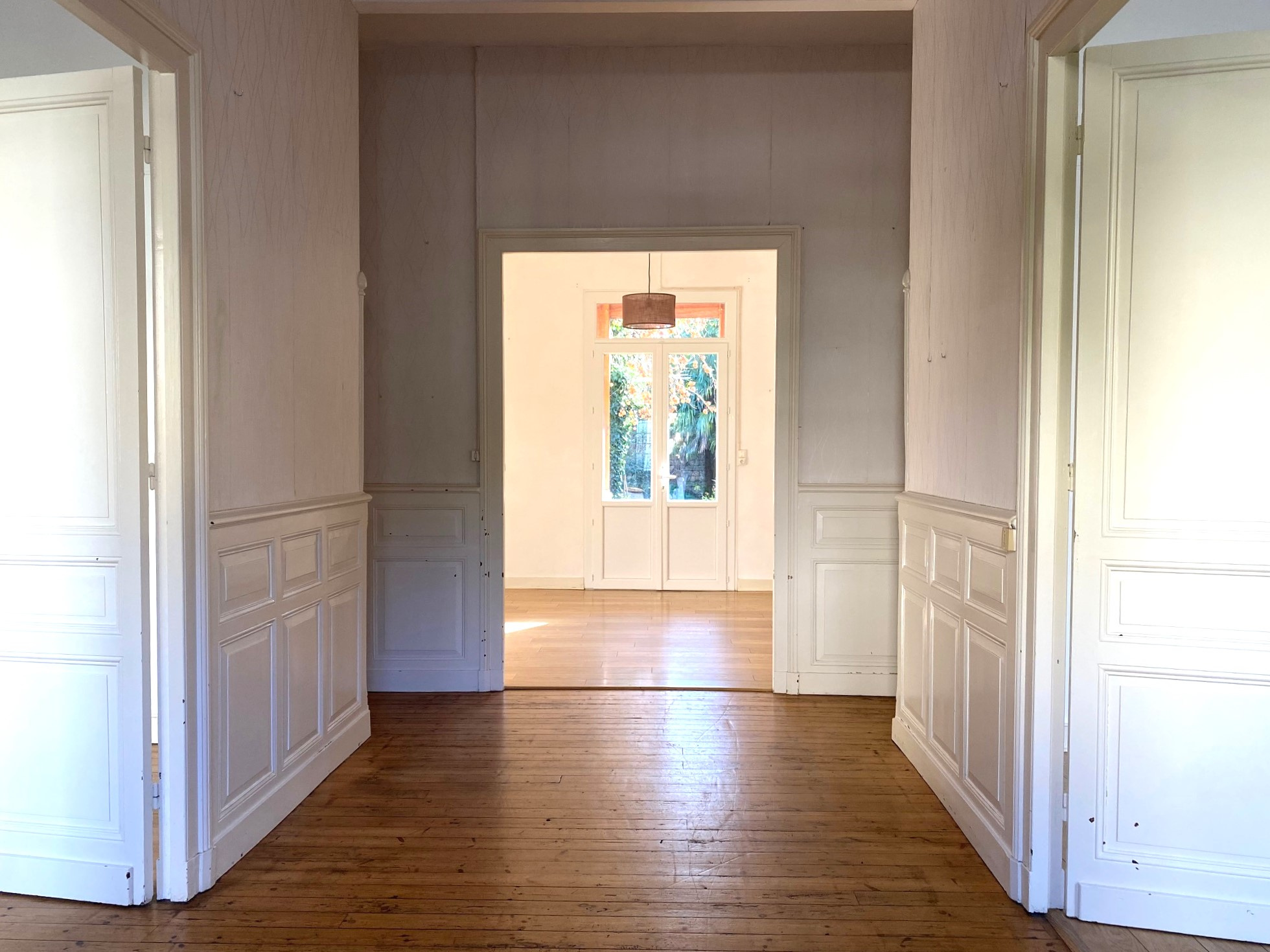 BELLE MAISON DE CARACTÈRE, quartier résidentiel et très recherché à Marmande, commerces, écoles et centre-ville accessibles à pied, construction pleine de charme en bon état général avec JARDIN et GARAGE (35m2)de plain pied comprenant très belle entrée, séjour cheminée, cuisine (possbilité de réunir ces 2 pièces), 3 grandes chambres (ou autre), 3 salles d'eau avec wc, cave enterrée, terrasse couverte donnant sur jardin piscinable et arboré sans vis à vis, beaux parquets, cheminées en marbre, belle hauteur sous plafonds, COUP DE COEUR GARANTI !