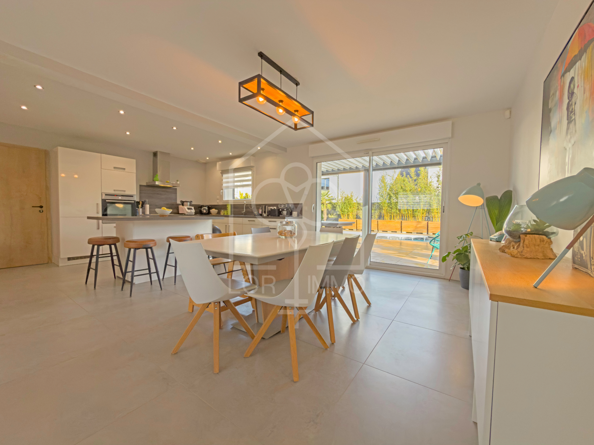 Spacieuse pièce de vie lumineuse, ouverte sur une cuisine moderne entièrement équipée