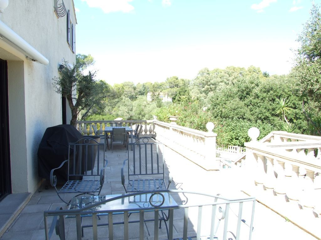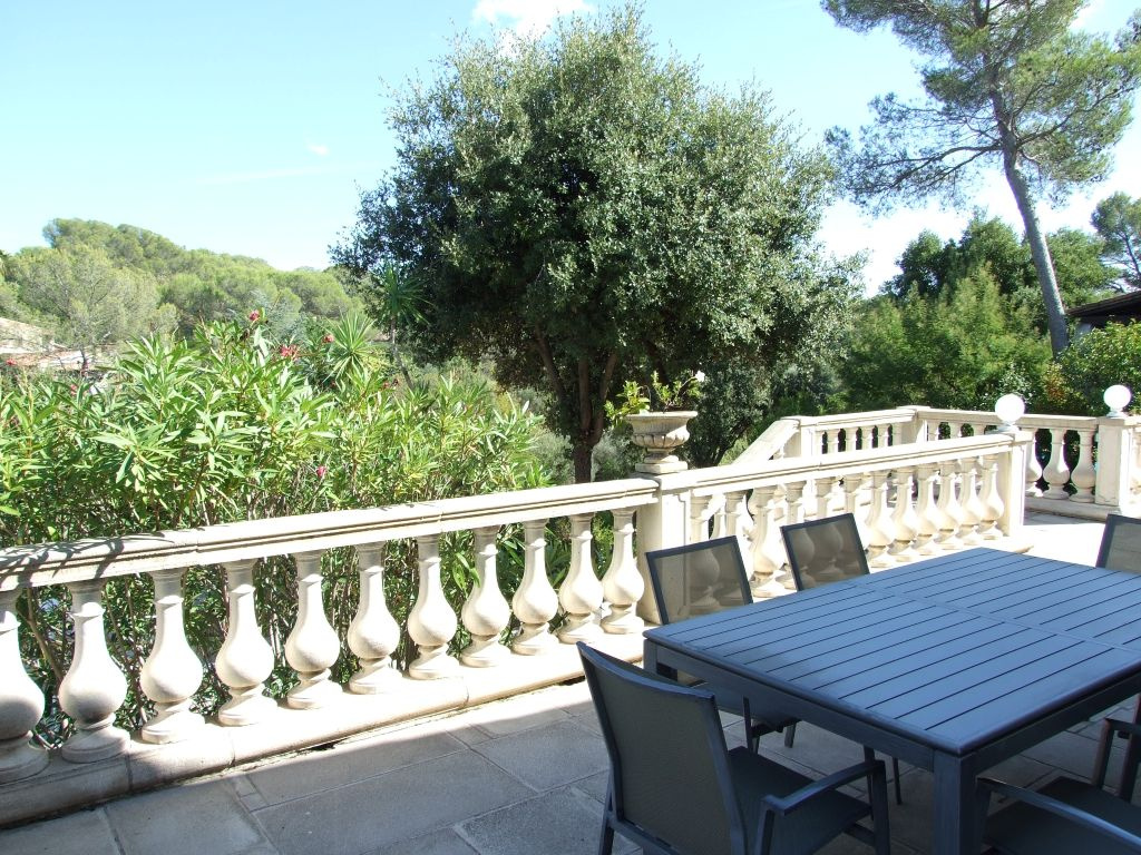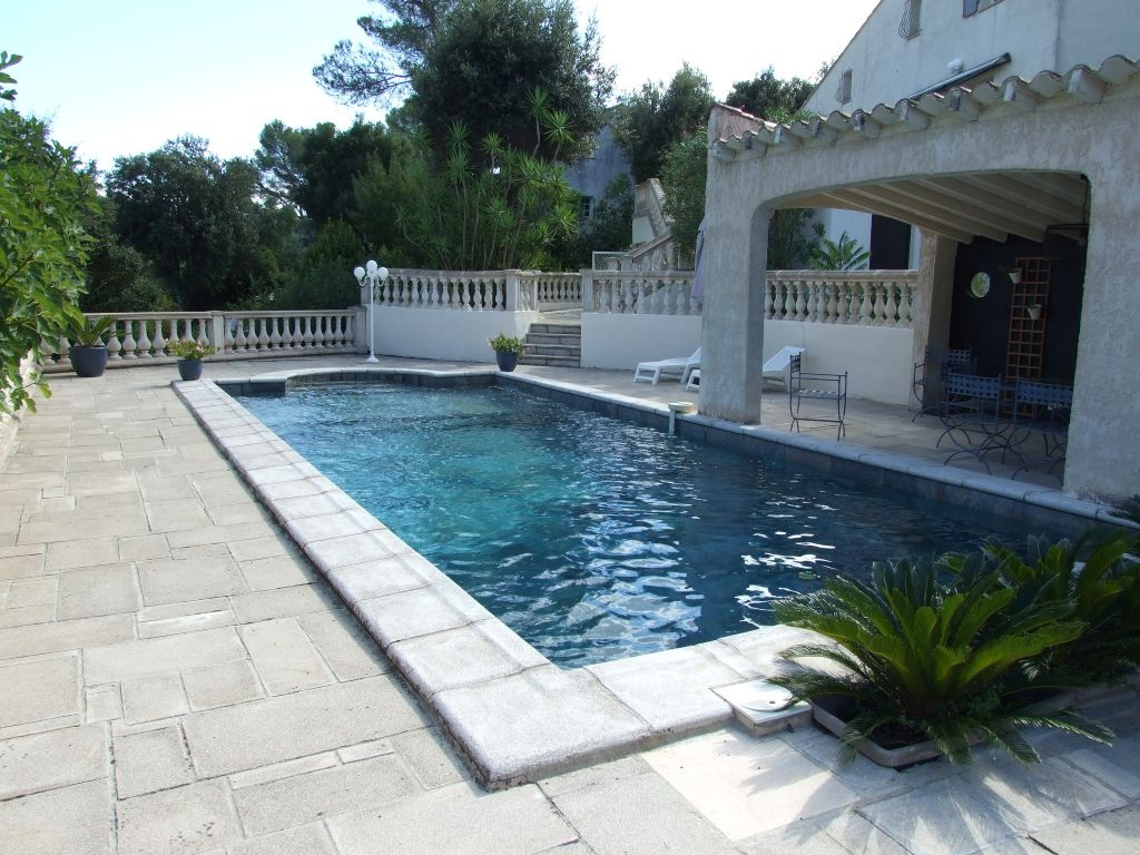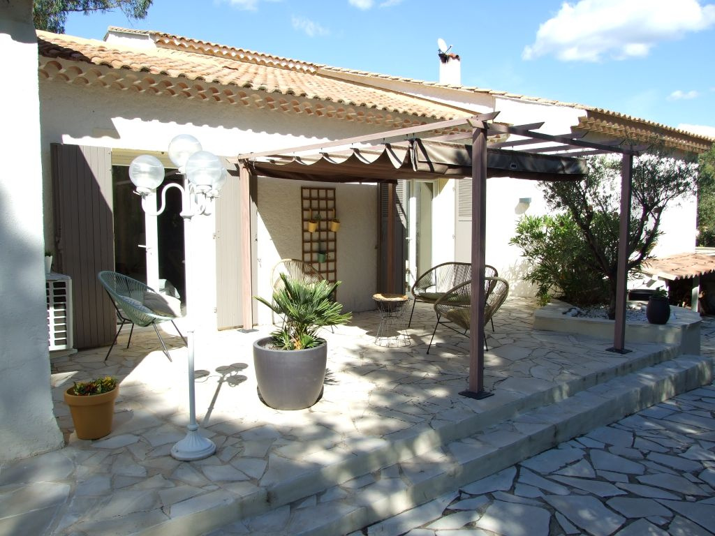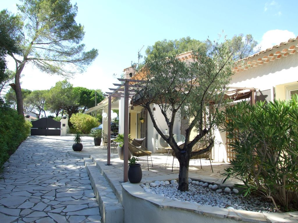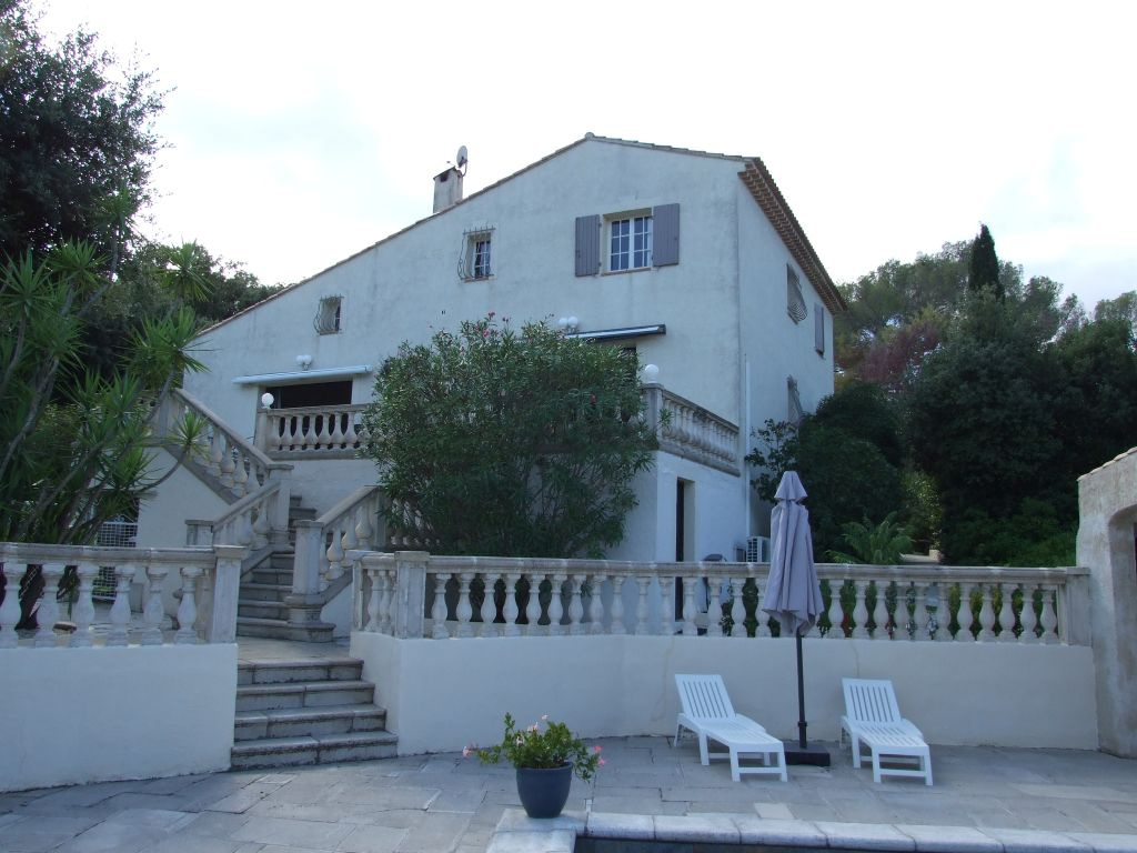 Très belle propriété dominante composée de 2 villas mitoyennes communiquantes sur terrain arboré de 1620 m2 avec picine et pool-house située dans le secteur de la Tour de Mare au calme, sans vis-à-vis avec vue sur la pinède. La villa principale d'environ 150 m2 est composée au rez-de-chaussée d'un vaste séjour salon (clim. réversible) avec cheminée et cuisine américaine équipée, d'une salle d'eau avec wc, d'un dressing et à l'étage, d'une mezzanine, trois chambres, un dressing, une salle de bain, un wc indépendant. La seconde villa d'environ 80 m2 entièrement rénovée est composée d'un séjour avec cuisine américaine équipée, deux chambres avec placard, une salle d'eau, un wc indépendant. (climatisation réversible, double vitrage, volets roulants électrique). Une cave, un abris bois, plusieurs stationnements à l'intérieur de la propriété avec accès par le portail automatique viennent compléter votre future résidence.