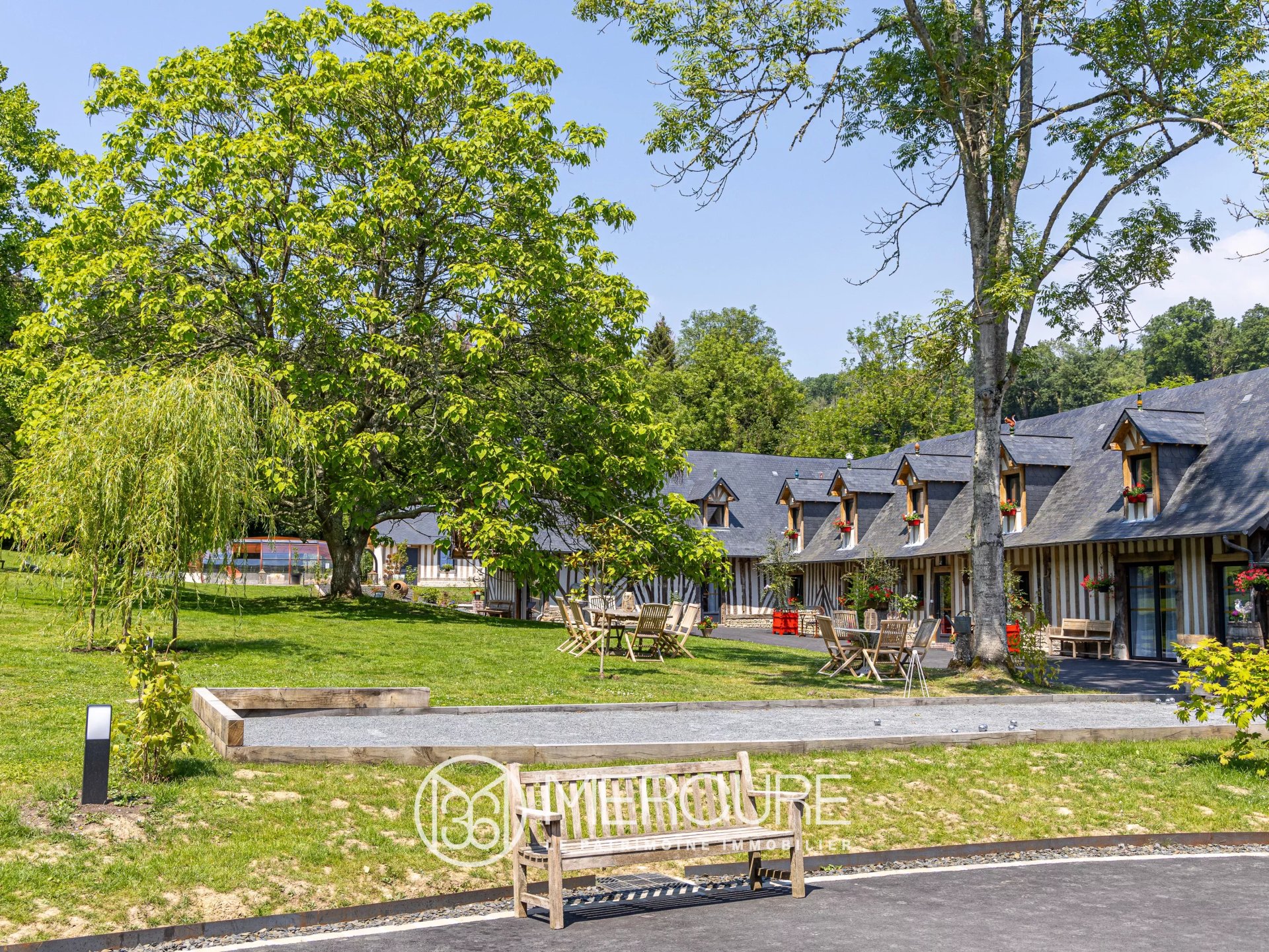 Au cœur du Pays d’Auge, région emblématique de la Normandie, se trouve ce superbe domaine touristique. Une propriété d’exception (env. 1550 m²) qui allie le raffinement architectural et la beauté naturelle, offrant un cadre de vie unique, intimiste et prestigieux.