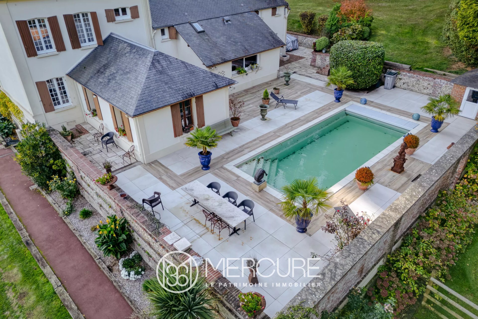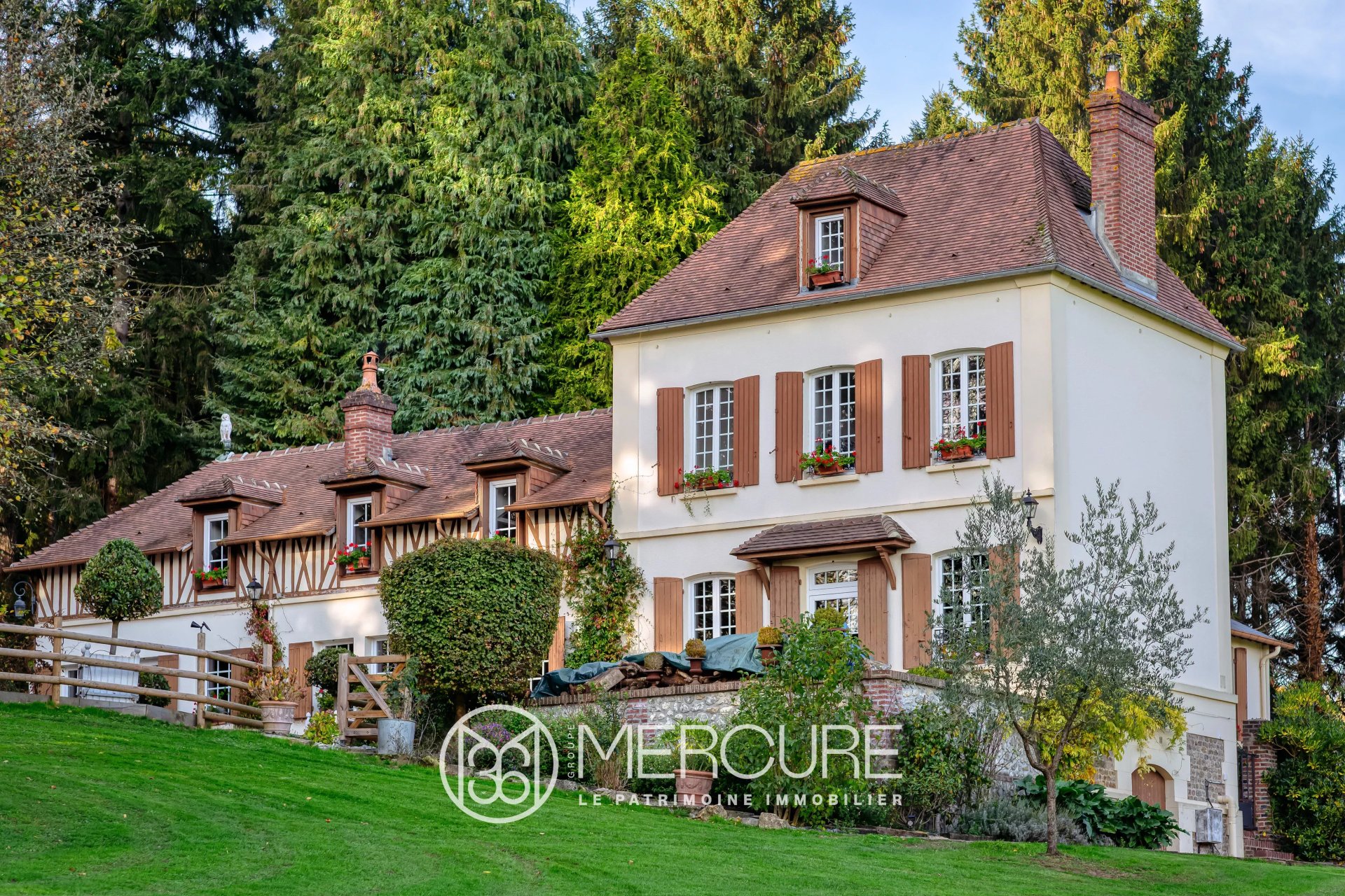 Dans son environnement paisible et verdoyant, accessoirisé de domotique adaptée, un bois vient compléter cet ensemble exceptionnel pour un projet très haut de gamme.