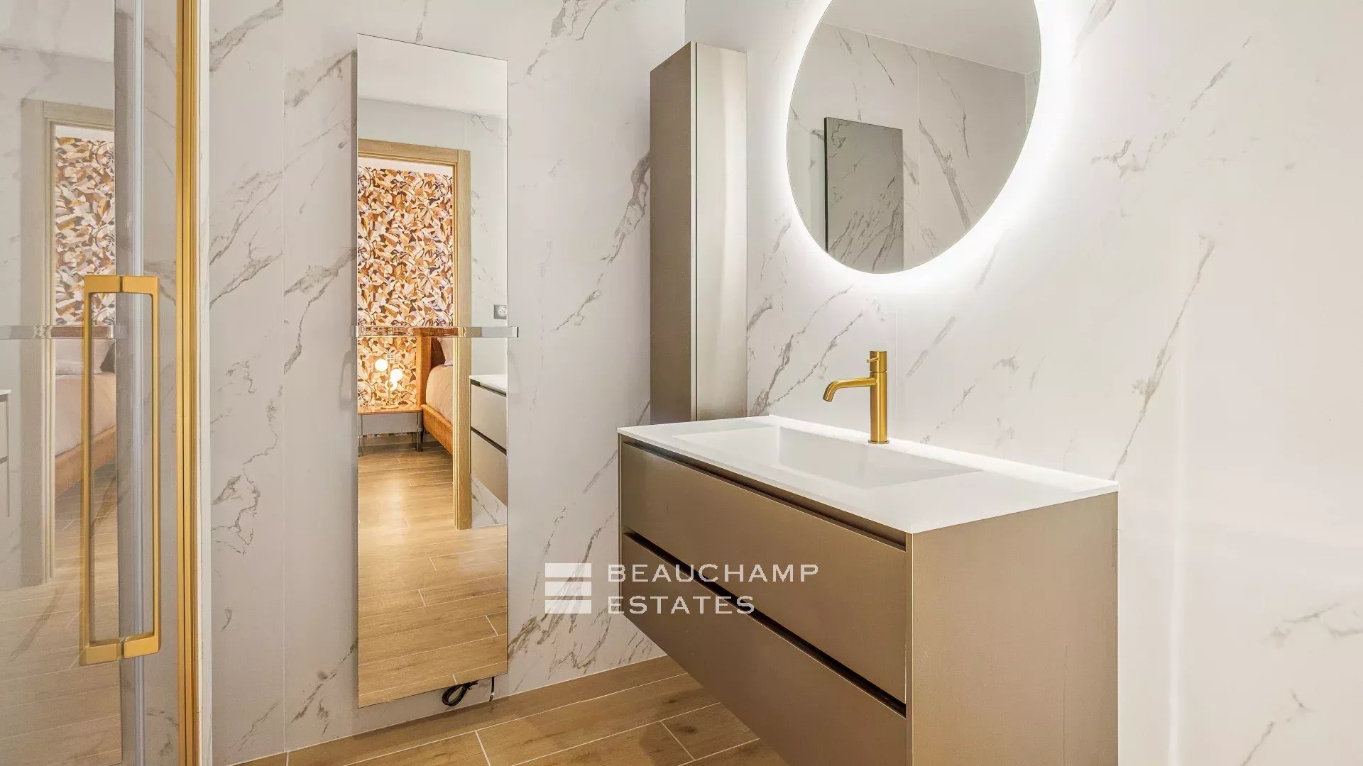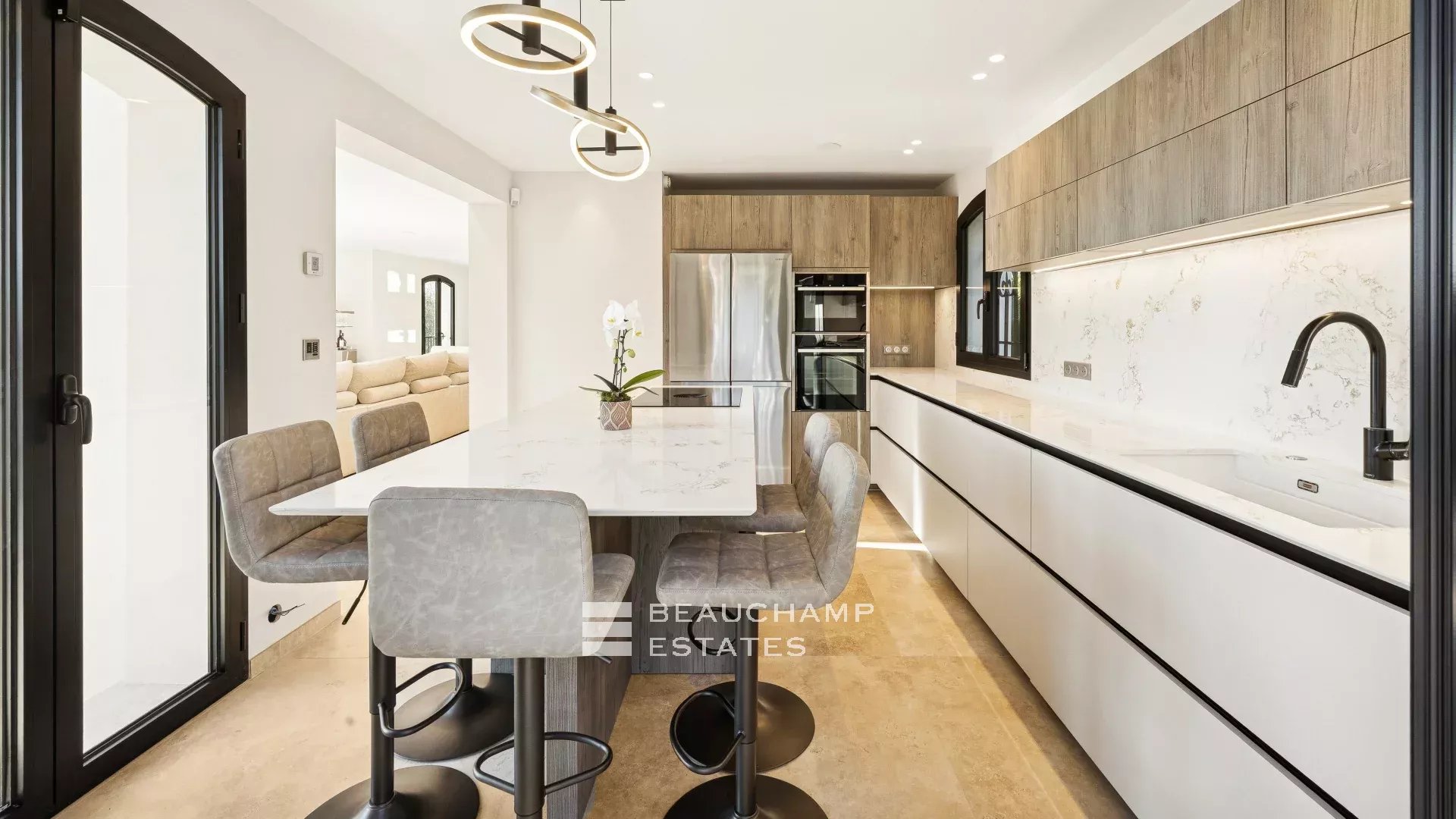 Située sur les hauteurs du Cannet, dans un environnement calme entouré de verdure cette villa contemporaine d’environ 280 m², entièrement rénovée avec des matériaux de qualité avec un aperçu vue mer.