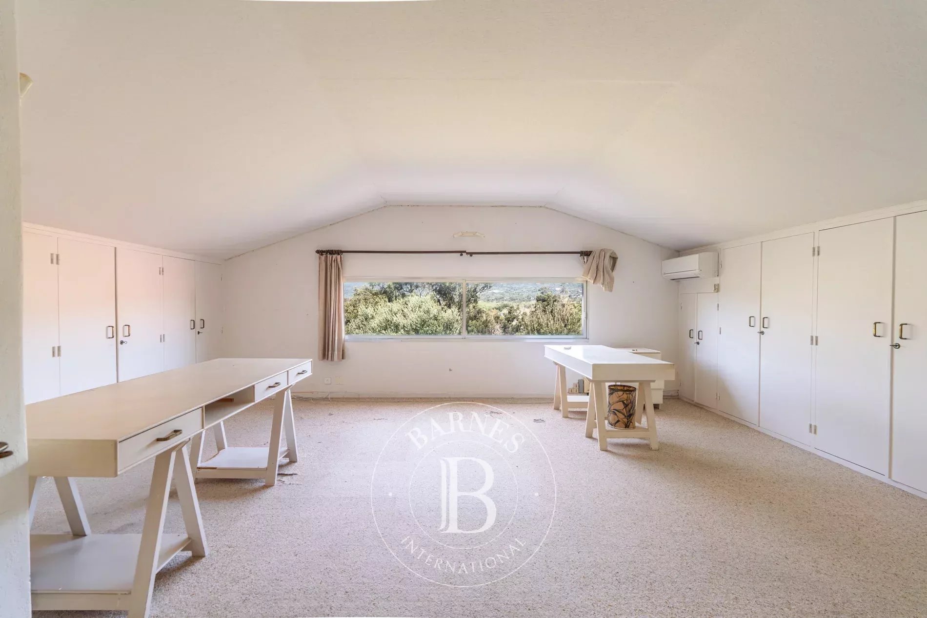 À deux pas de la baie de Pinarello, cette propriété profite d’un environnement naturel d’exception avec vue sur les montagnes corses.
