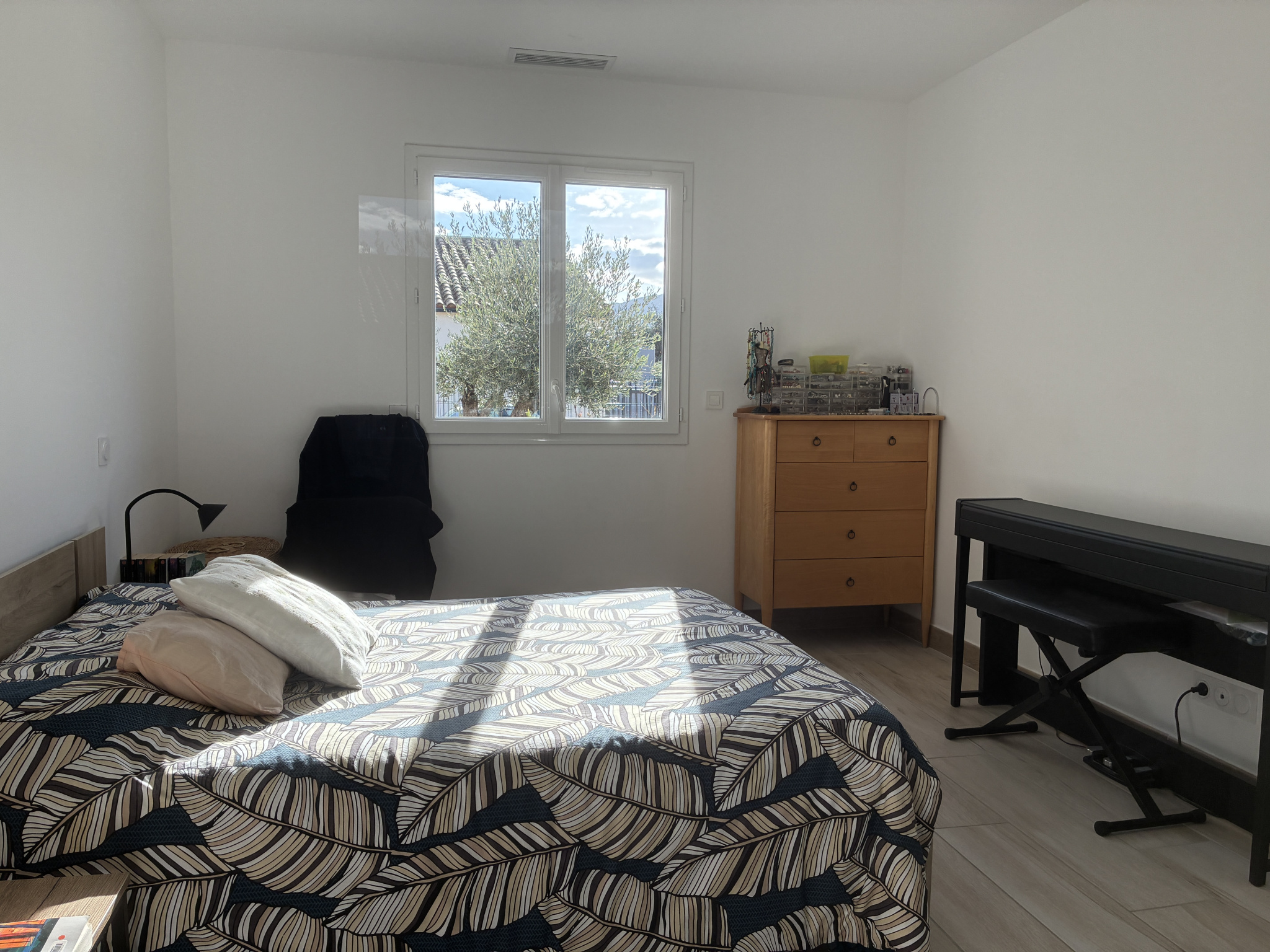 L'espace nuit est composé de trois chambres avec placards intégrés, dont une suite parentale avec dressing et salle d'eau privative, ainsi qu'une salle de bain moderne avec douche à fond plat, WC suspendus et sèche-serviettes.