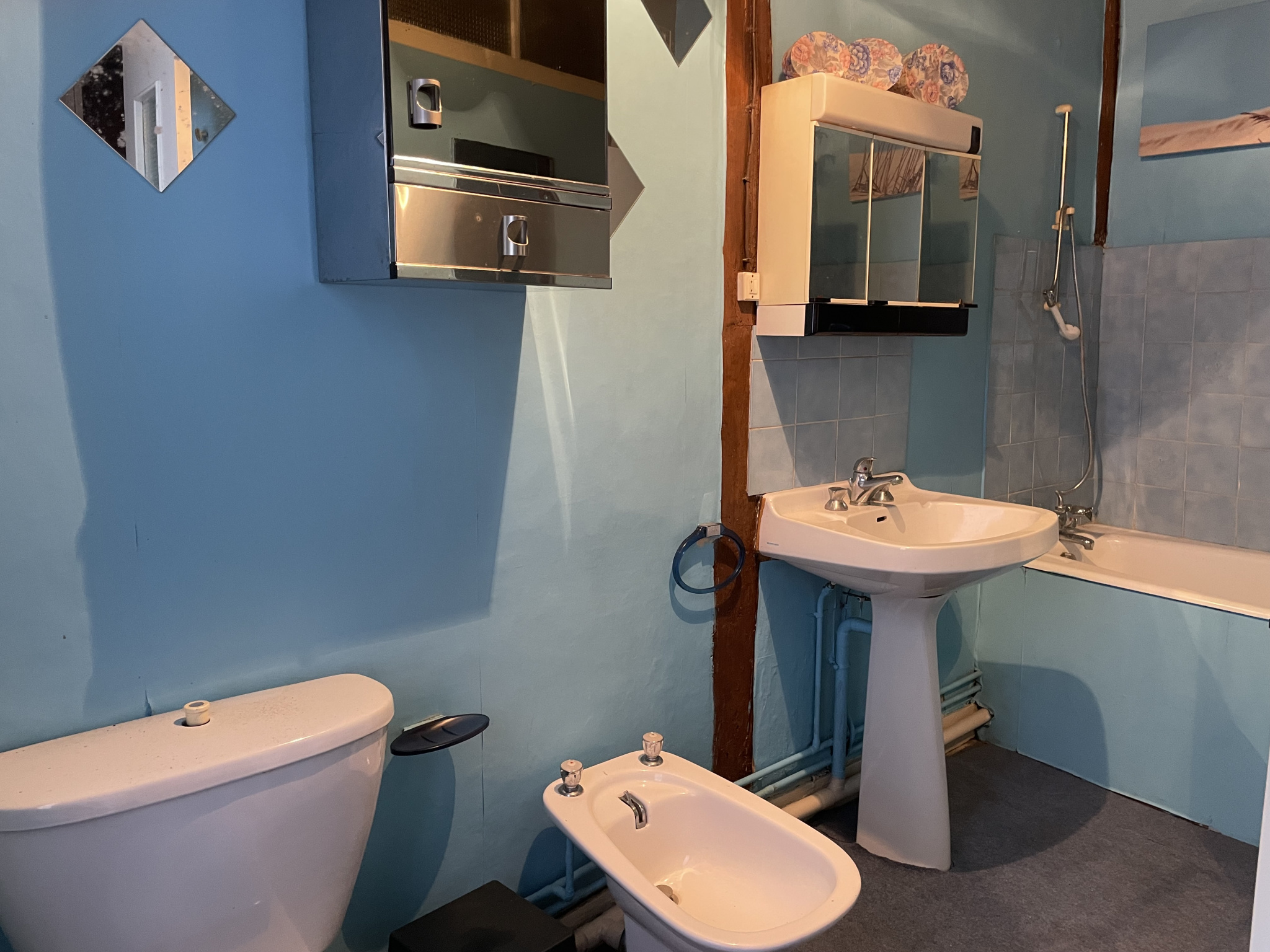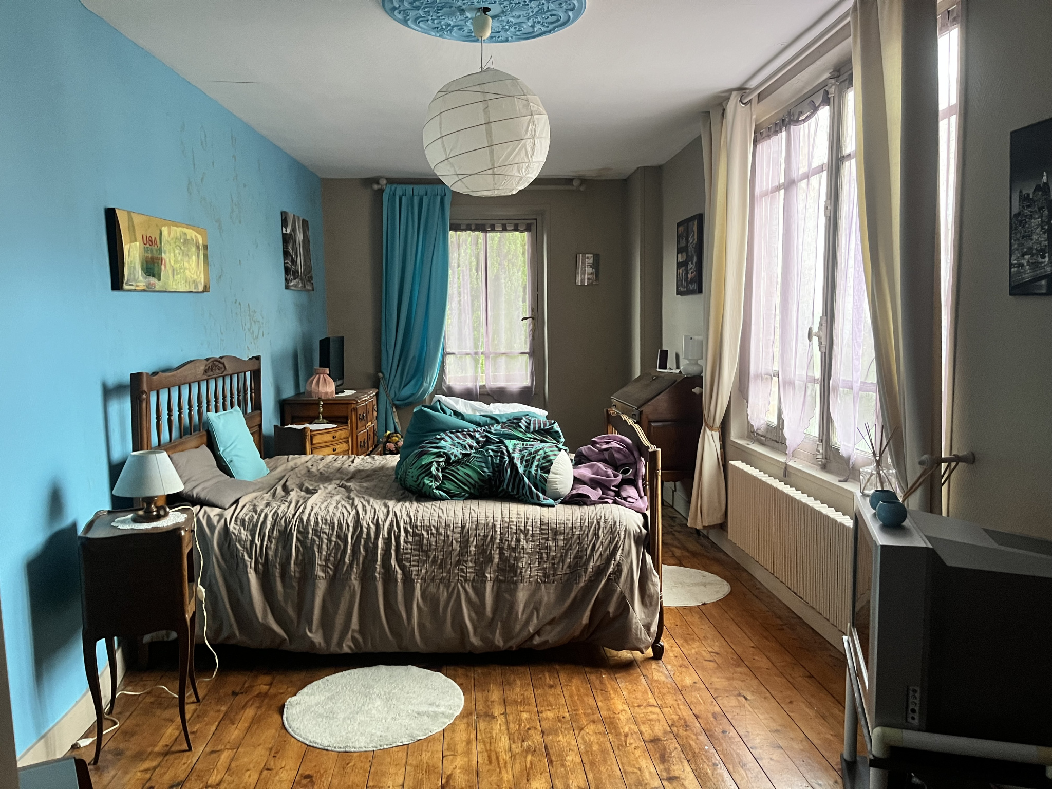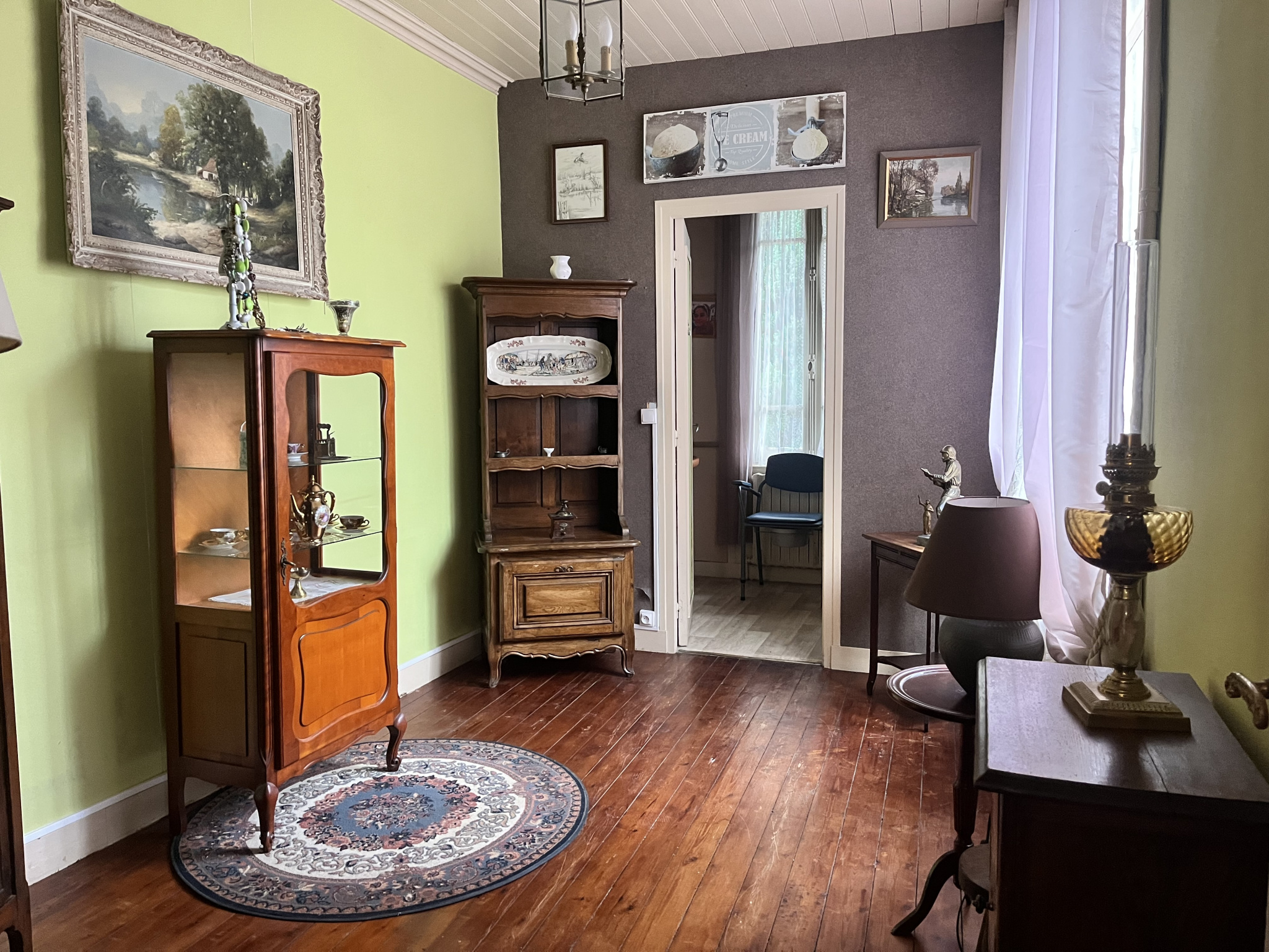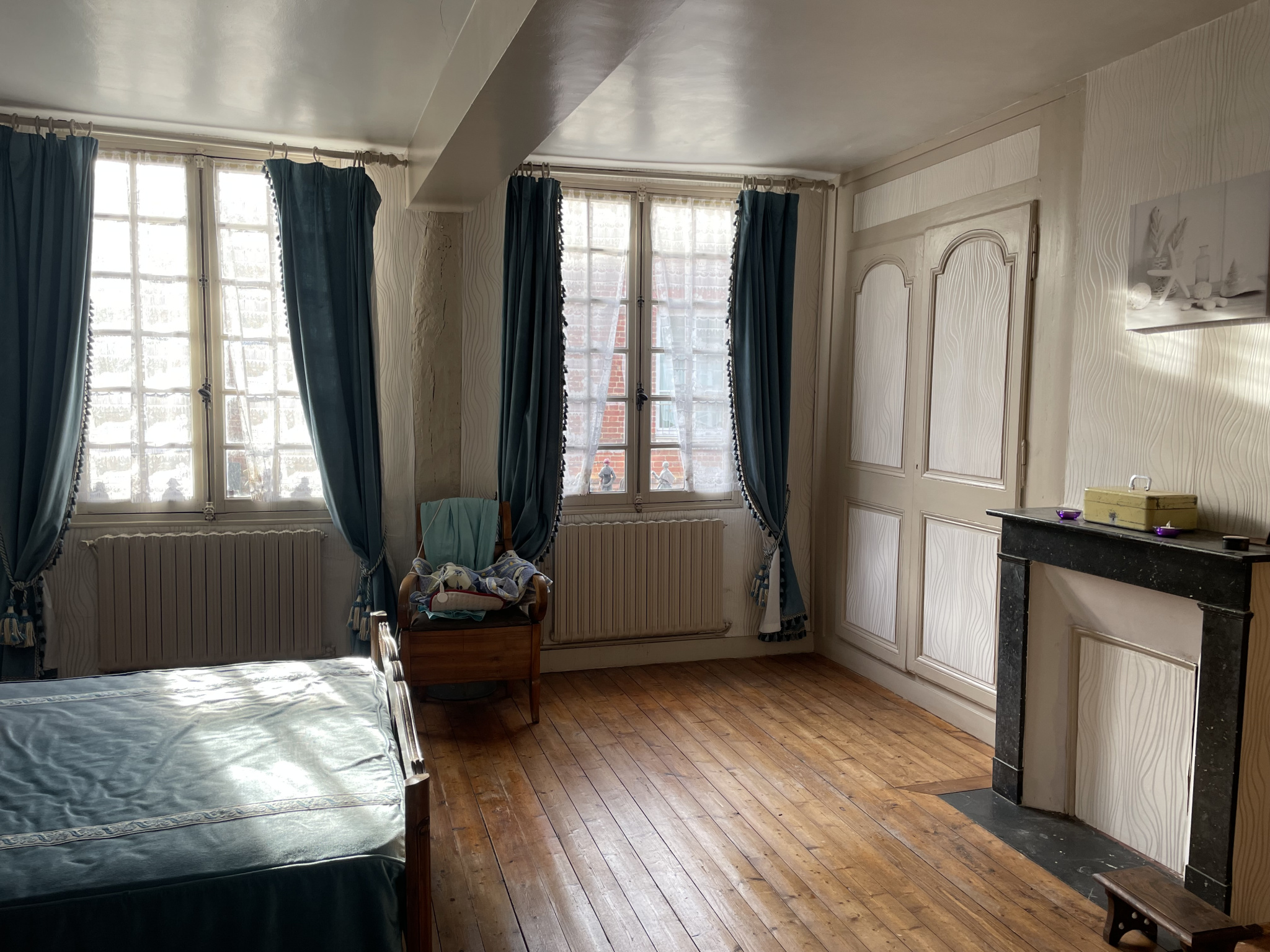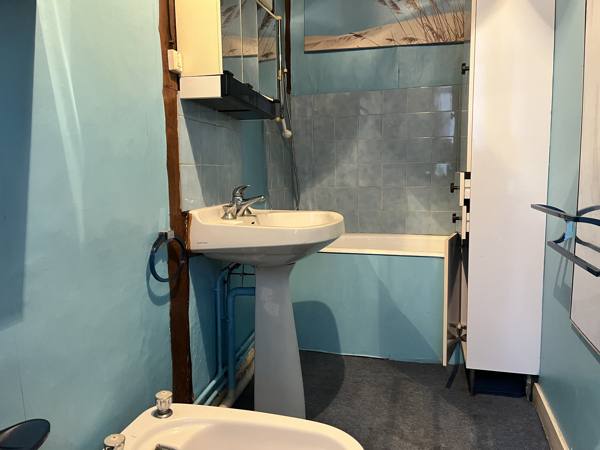 Etage : Deux chambres parquetées, salle de bains avec wc, grenier à suivre ( possibilité 1 chambre).