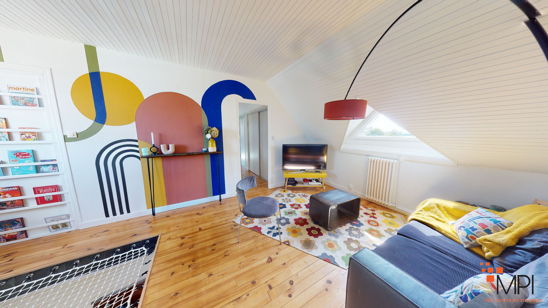 À l'étage, une agréable mezzanine dessert quatre chambres supplémentaires ainsi qu'une salle d'eau avec WC. Un grenier aménageable vient parfaire l'ensemble, offrant un potentiel d'extension selon vos envies.