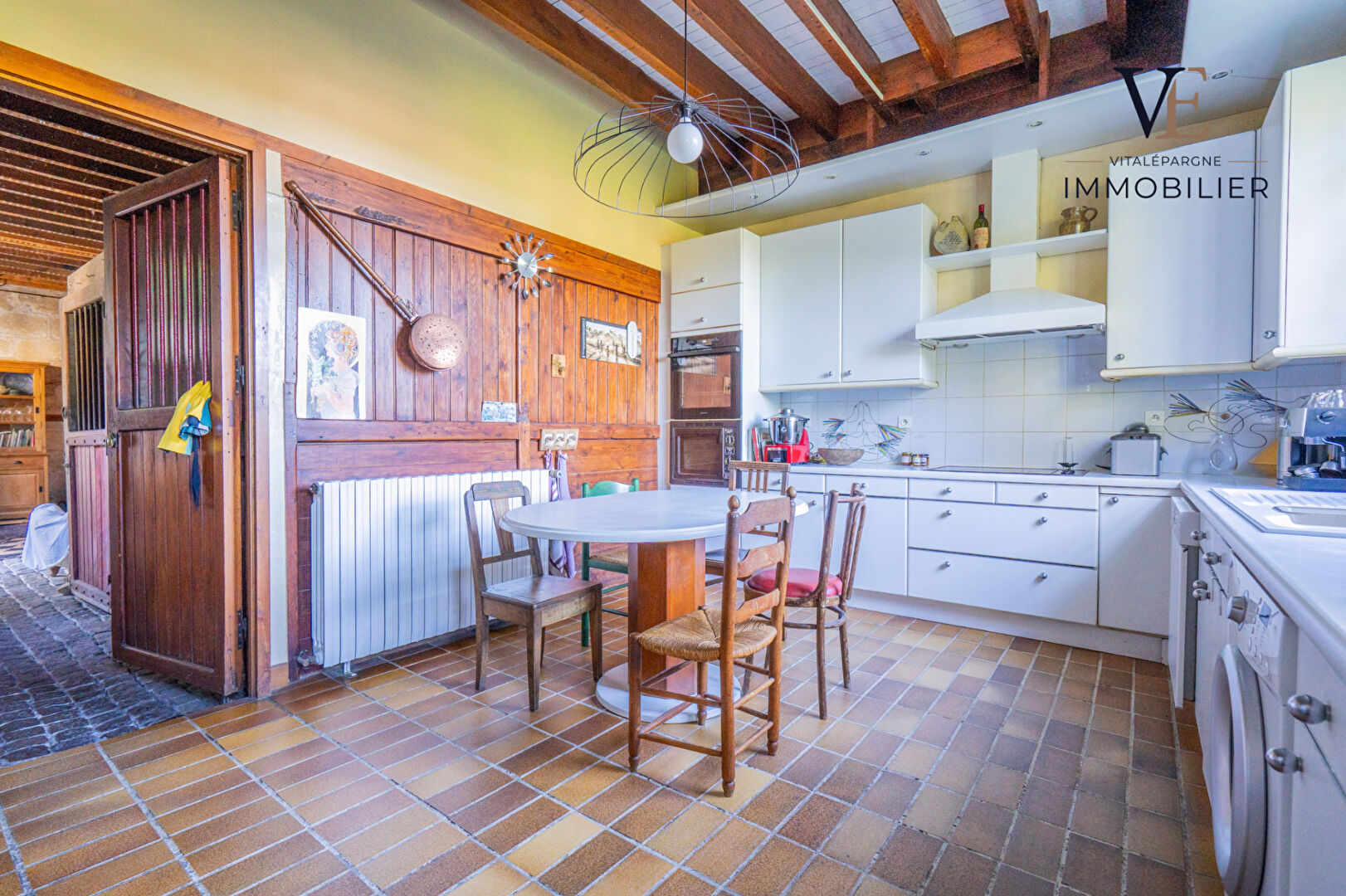 Au rez-de-chaussée, vous découvrirez une entrée chaleureuse, un séjour traversant de plus de 40 m² avec cheminée, une salle à manger ainsi qu'une cuisine indépendante. Une vaste pièce supplémentaire, chauffée et d'environ 50 m², conservant son ancien box à chevaux, complète ce niveau et présente un fort potentiel d'aménagement.
