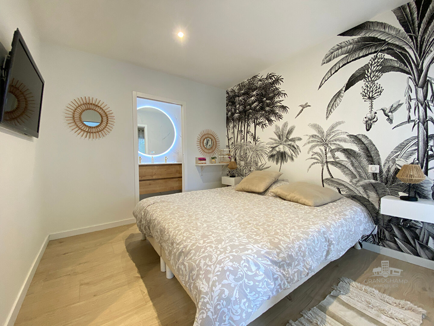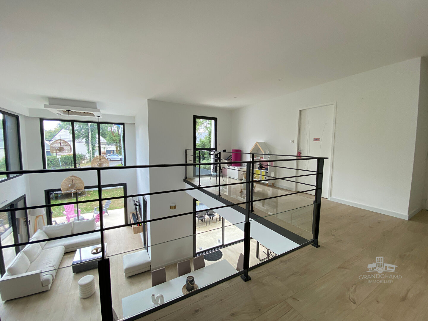 Un bureau, séparé par une élégante verrière donnant sur le salon, vient compléter ce niveau et offre un espace idéal pour le télétravail ou les moments de lecture.