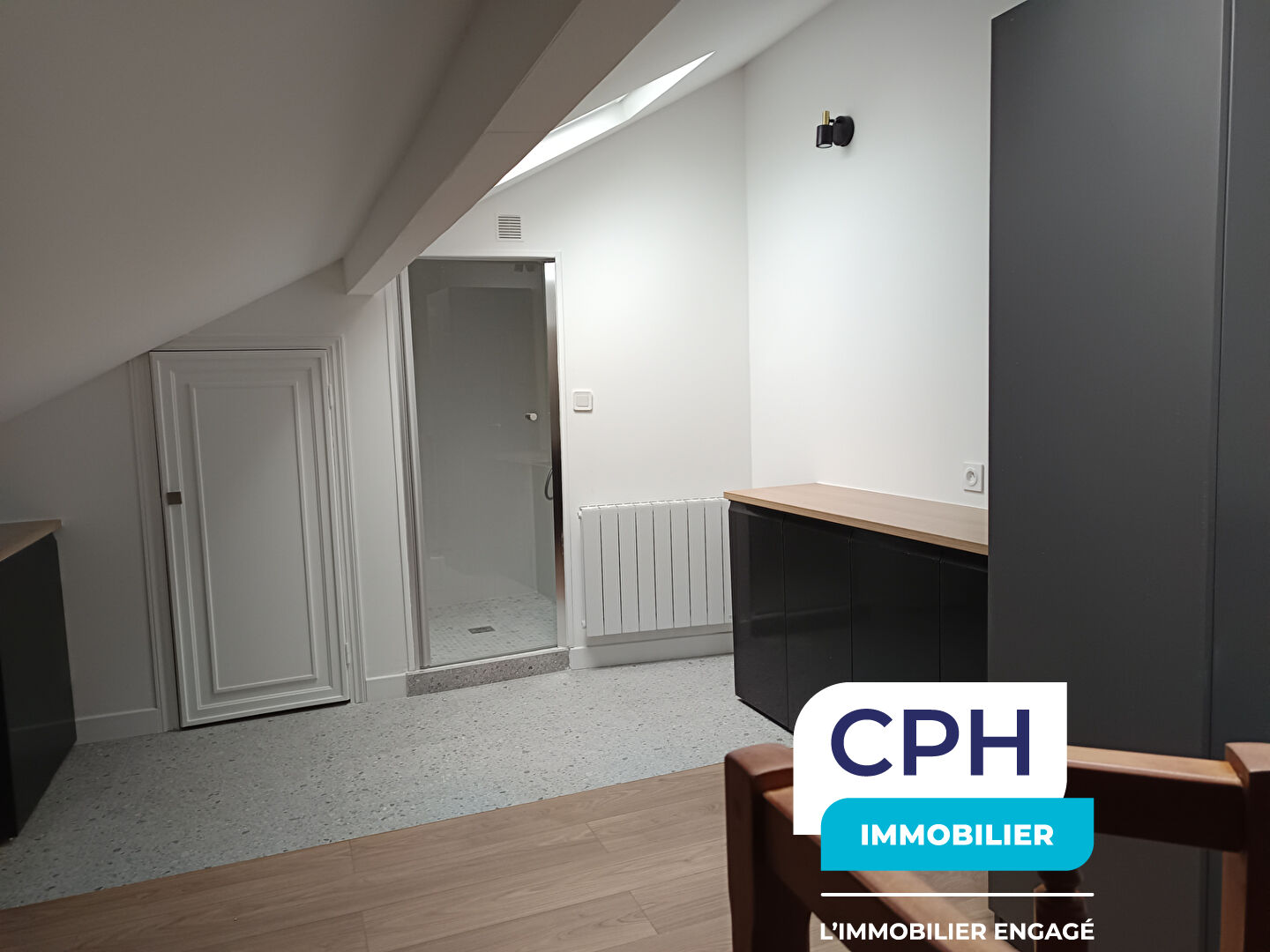 CPH IMMOBILIER vous propose cet appartement 2 pièces entièrement refait à neuf de 26,75 m² (Loi carrez) soit 36,49 m² (de surface au sol), isolation effectuée, comprenant : une entrée, un séjour, une cuisine ouverte sur séjour, WC séparé avec lave mains, et à l'étage, une chambre avec rangements, une salle d'eau avec douche italienne et un cagibis.