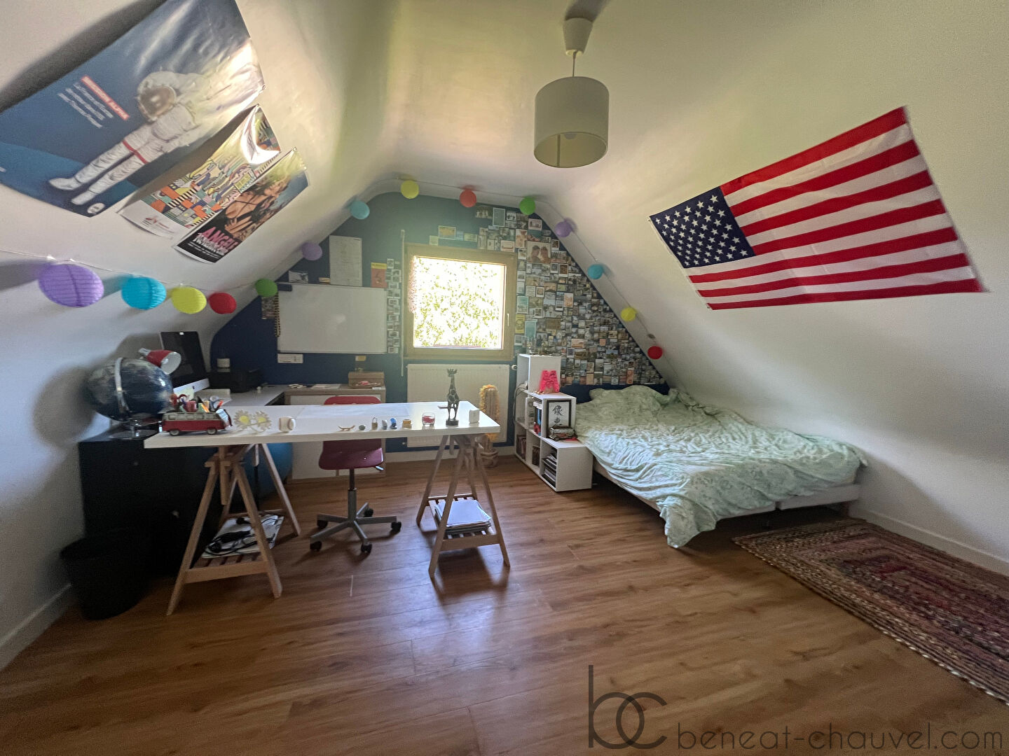 L'étage est entièrement dédié au confort de l'espace nuit. Un dégagement dessert trois chambres supplémentaires, dont une suite parentale double bénéficiant de son propre dressing. L'étage est complété par une salle d'eau, un second WC et une salle de jeux très agréable qui peut aisément être transformée en bureau ou en chambre d'appoint.
