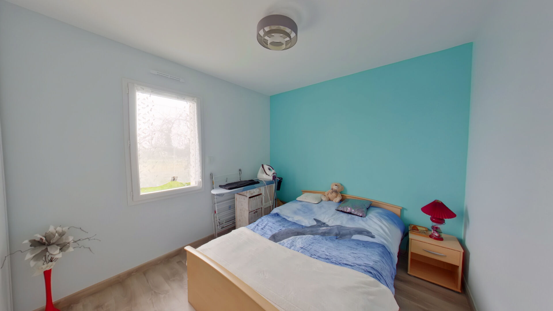 La maison dispose de trois chambres dont une avec dressing ainsi que d'un bureau, depuis lequel on accède directement au garage attenant, idéal pour le rangement ou pour créer un espace supplémentaire selon vos besoins. Une salle d'eau moderne complète ce bien.