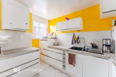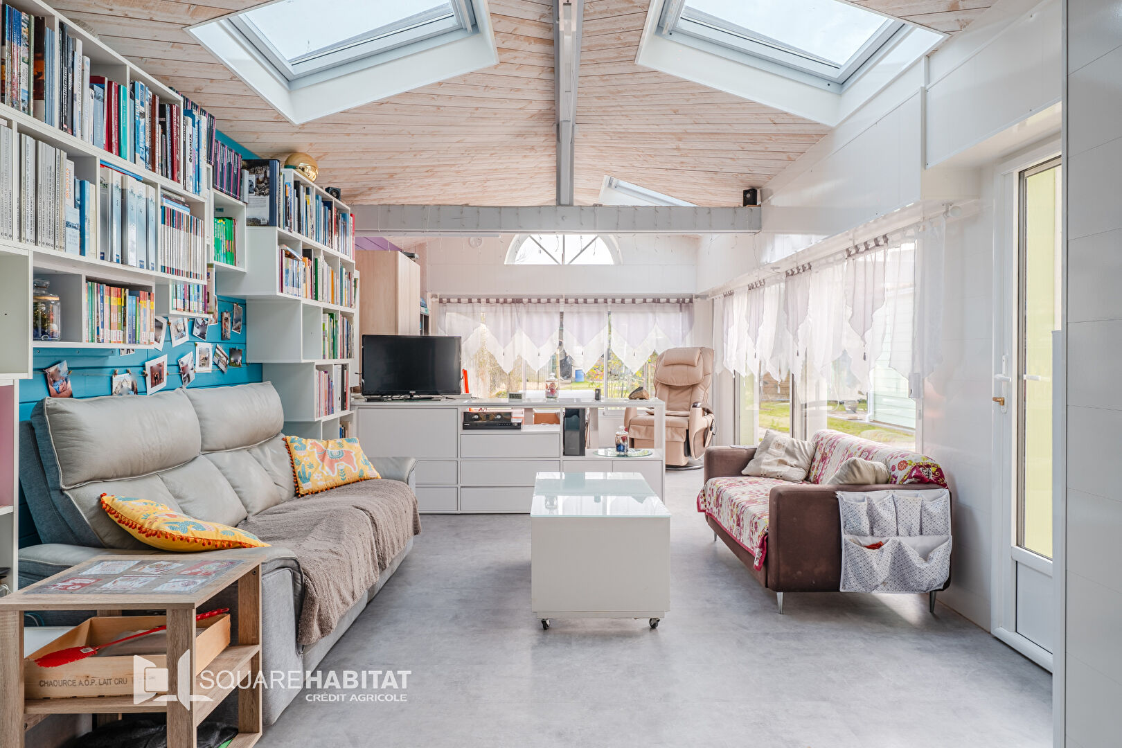 Dès l'entrée, vous découvrez une agréable cuisine aménagée et équipée, ouverte sur une pièce de vie baignée de lumière. Son poêle de masse apporte une ambiance douce et chaleureuse, parfaite pour les moments en famille ou entre amis.