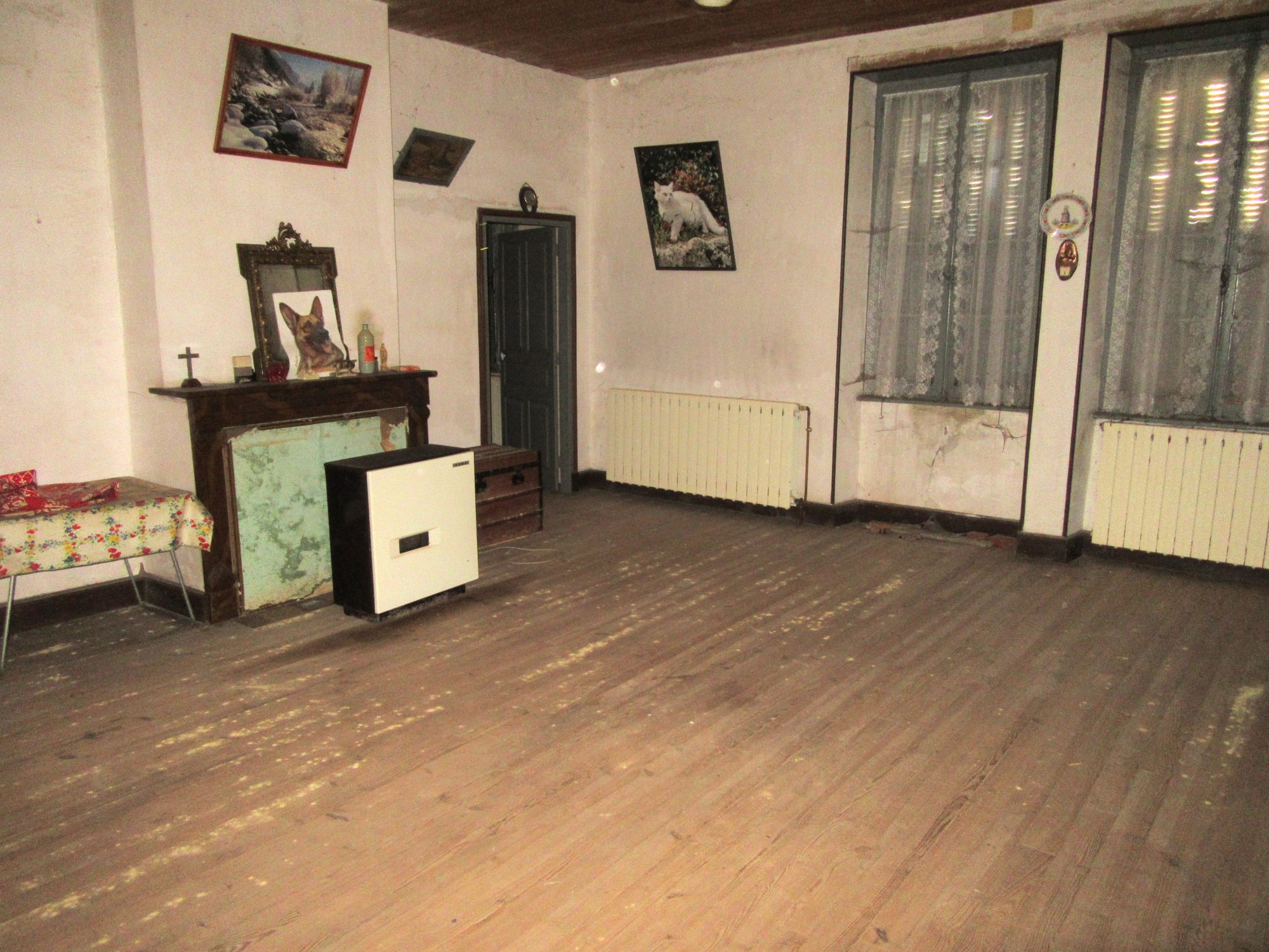 - Une maison d'habitation en pierre apparente (grès) T5 d'une superficie habitable de 104,50 m² environ à laquelle s'ajoutent des caves de 55,20 m² environ plus un grenier aménageable de 55 m² environ.Gros oeuvre traditionnel en bon état, charpente traditionnelle et couverture en ardoise sur volige, pas d'isolation murale ni d'isolation dans le grenier, chauffage central ancien au fuel, menuiseries anciennes en bois simple vitrage, assainissement individuel, intérieur à réhabiliter entièrement : cuisine, sanitaire, électricité, chauffage, peinture, menuiseries etc?