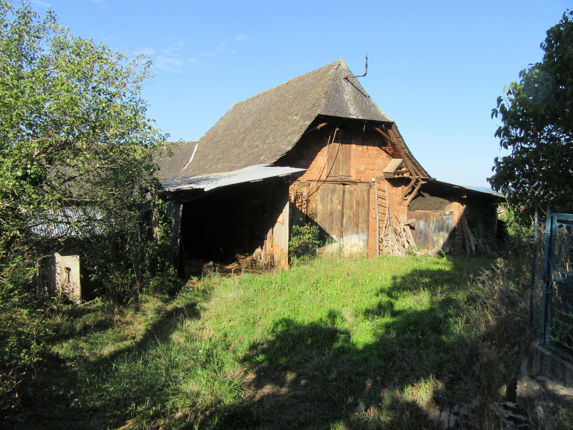 -Une grange en pierre apparente (grès) avec une couverture en ardoise, sur deux niveaux avec la partie supérieure en forme de L, de plain-pied en haut, de 86 m² environ et un niveau inférieur ancienne étable de 51 m² environ,