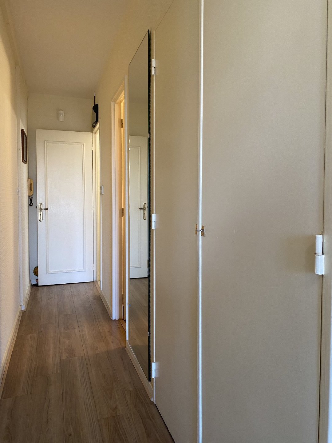 Balcon filant et grandes baies récentes. Rafraîchissement à prévoir.