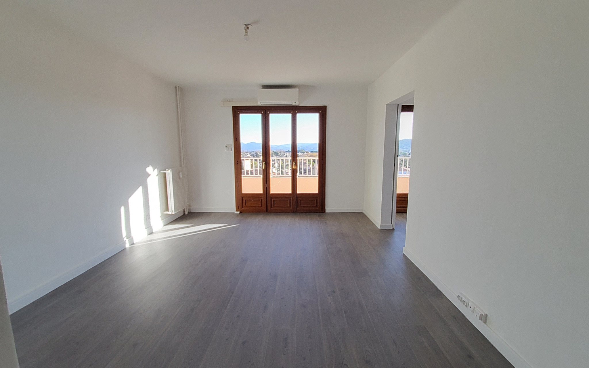 Cuers, appartement T4 traversant d'environ 72m2 au deuxième étage, avec grand balcon, cave et place de stationnement.