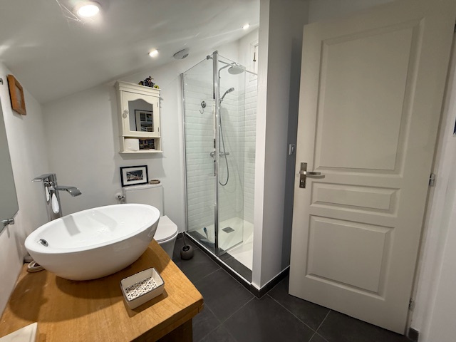 FCI IMMOBILIER vous propose cette maison restaurée avec gout comprenant de plain pied cuisine ouverte sur un séjour avec poele à bois, salon, chambre avec dressing, bureau, salle d'eau, WC, chaufferie/cellier et à l'étage deux chambres, grande pièce pouvant servir de salle de jeux, sport ..., dressing ou bureau et salle d'eau avec WC.