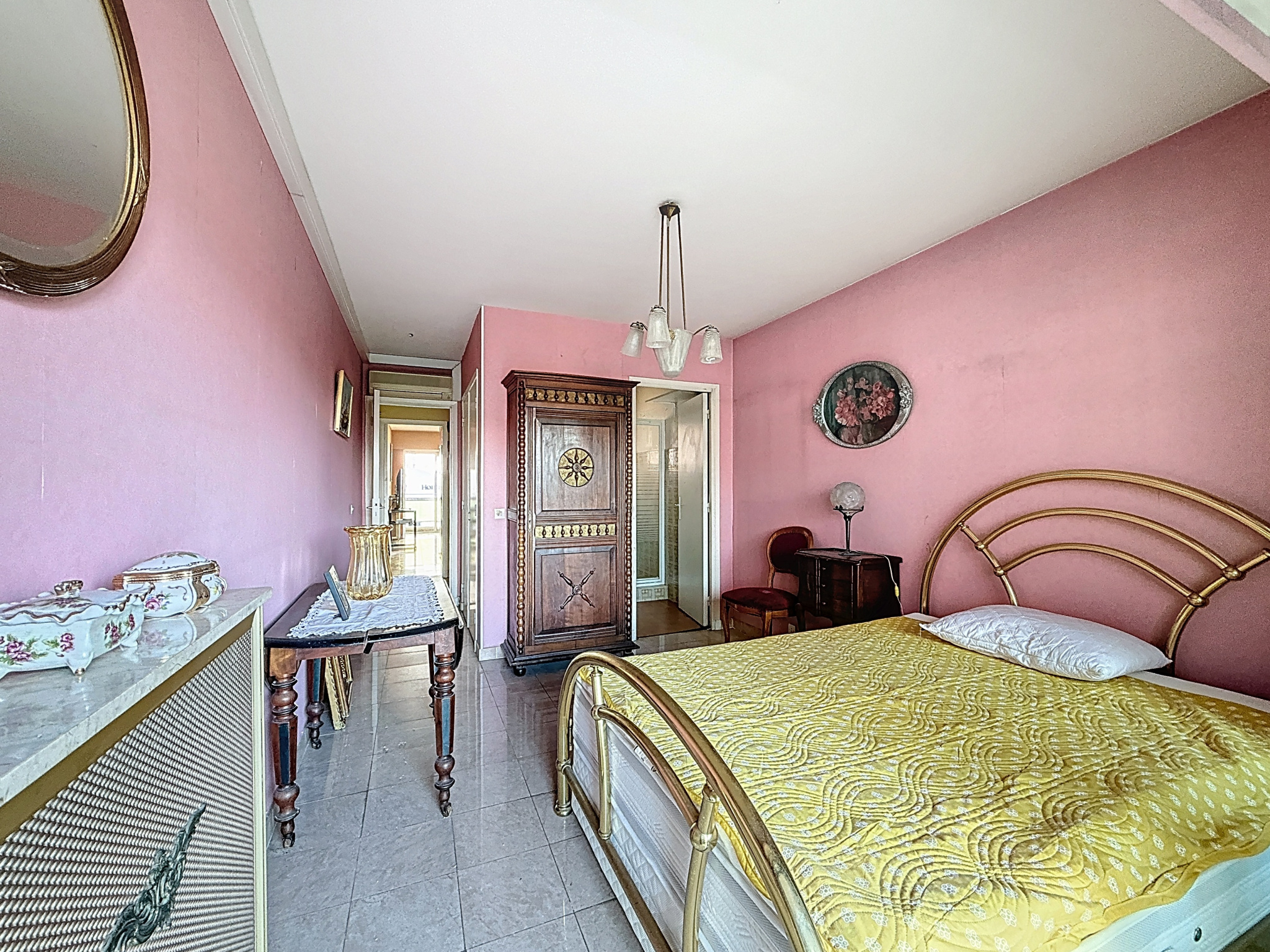 Cannes, proche Carnot et Avenue des Anglais, découvrez ce 3 pièces en avant-dernier étage situé dans une résidence de très beau standing. L'appartement est traversant et d'angle, garantissant une belle luminosité et un vis à vis limité. Il se compose d'une entrée, d'un séjour lumineux ouvrant sur une terrasse exposée Sud, de deux chambres, chacune avec sa salle de bains privative, d'un WC séparé, et d'une cuisine indépendante prolongée par une loggia exposée Nord. Les prestations incluent le chauffage collectif, la climatisation à air pulsé, un garage en sous-sol et une cave. La résidence est sécurisée et dispose d'un gardien. Des travaux de rafraîchissement sont à prévoir, offrant un excellent potentiel de modernisation. Un bien rare dans un secteur recherché pour son calme, sa qualité de vie et sa proximité immédiate des commodités. Soumis au régime de copropriété. Charges annuelles : 3360EUR. Honoraires charge acquéreur de 5% ttc inclus dans le prix de vente.