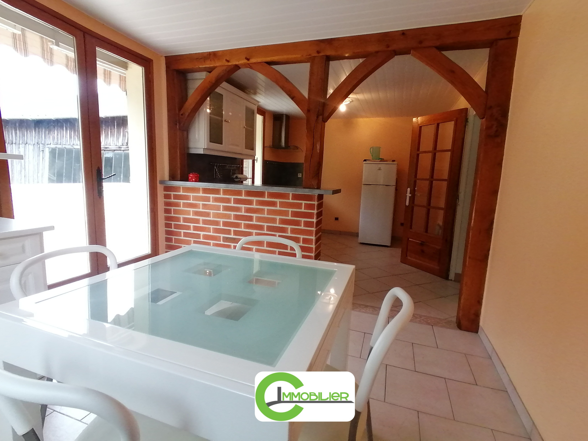 À l'intérieur, vous trouverez : une cuisine aménagée et équipée, prête à accueillir vos talents culinaires, donnant accès à la terrasse, un salon/salle à manger agrémenté d'une cheminée à foyer fermé, idéal pour des soirées conviviales. Une salle d'eau avec deux douches et un wc. À l'étage, l'espace nuit comprend : trois chambres lumineuses, toutes équipées de placard pour un rangement optimal, un wc indépendant pour davantage de confort au quotidien.
