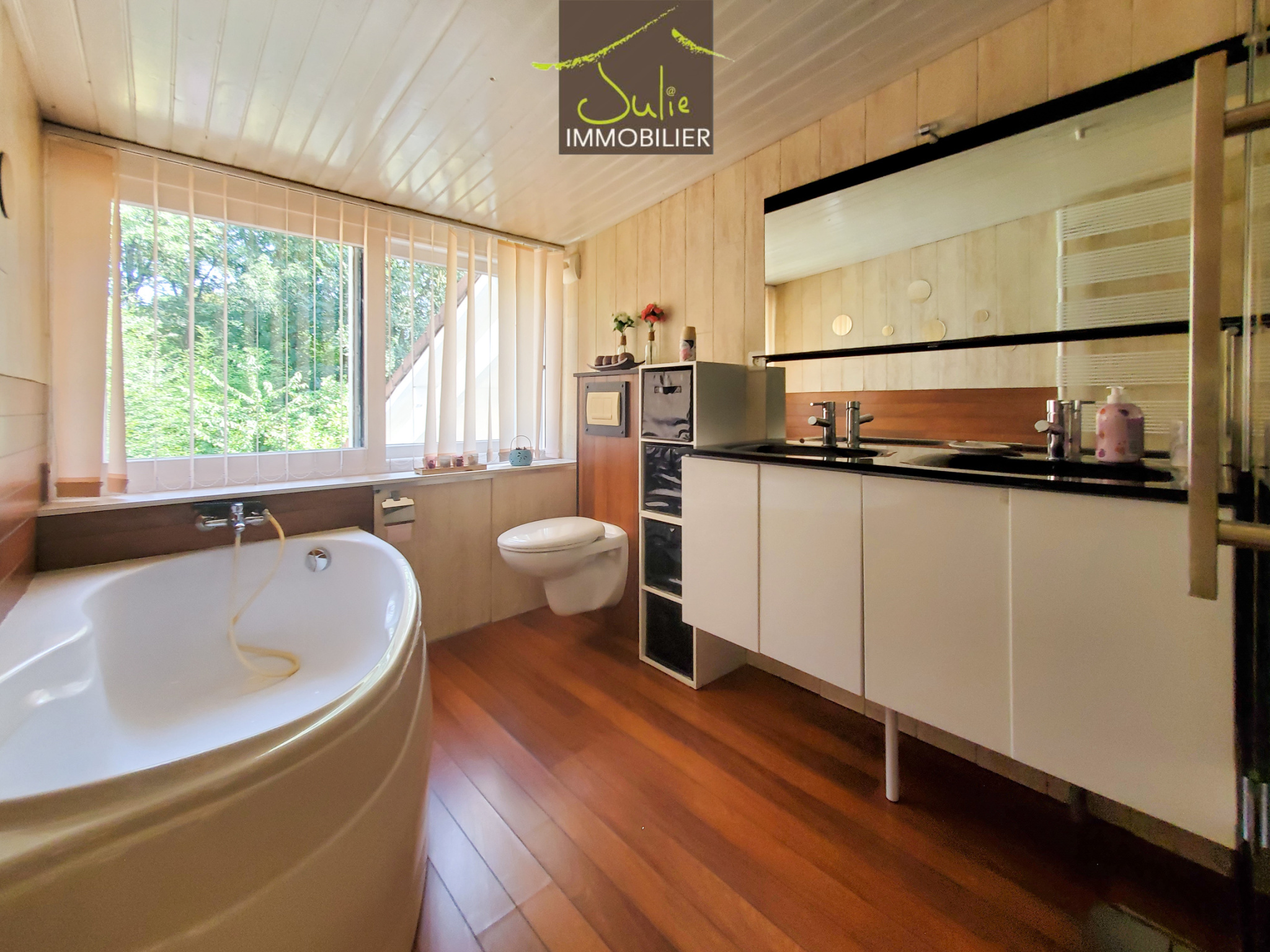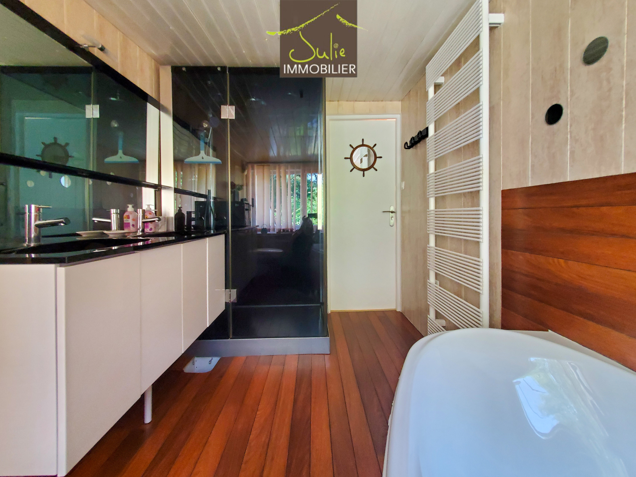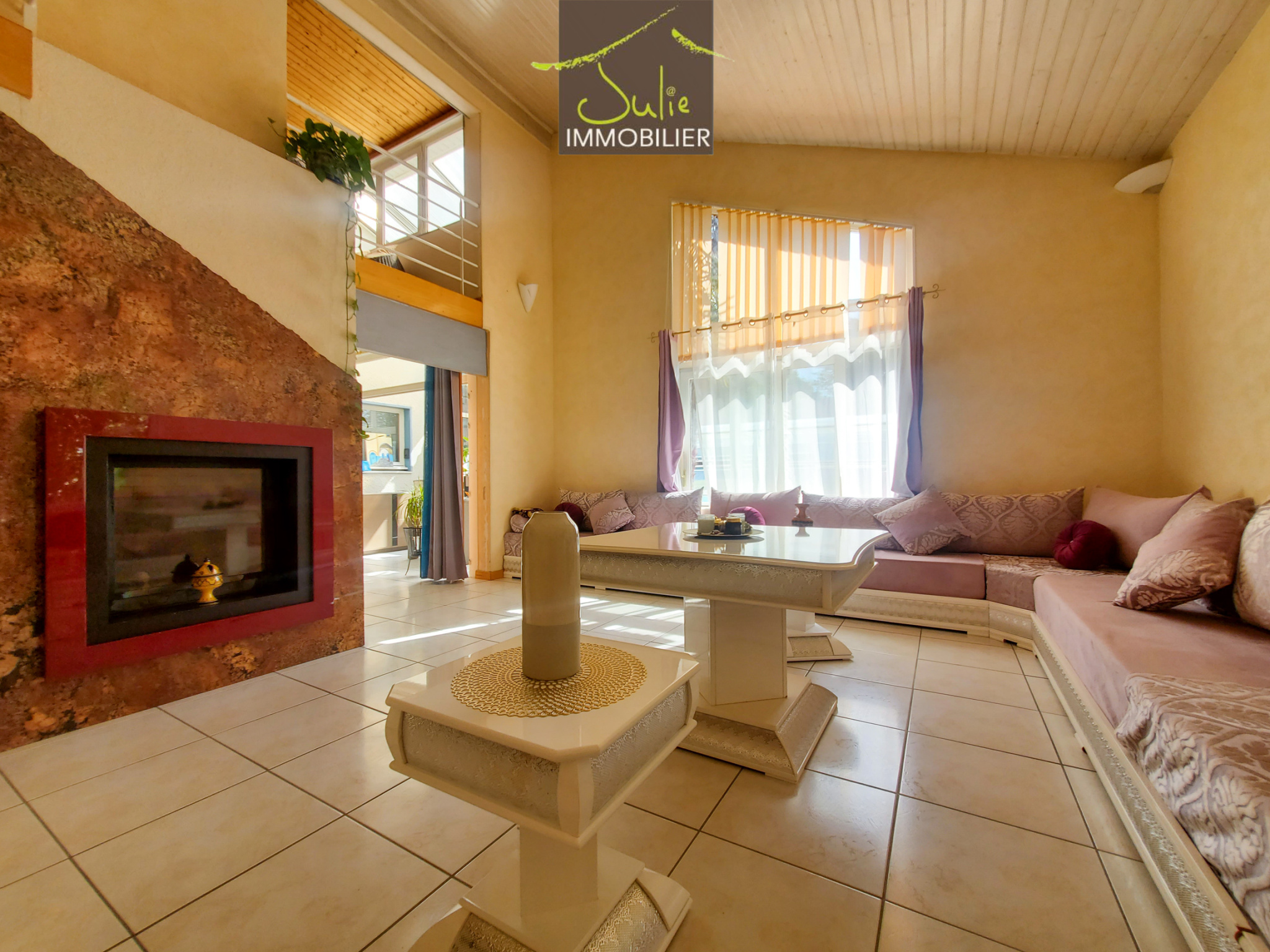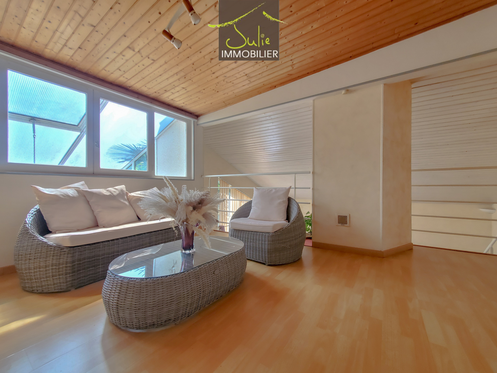 A l'étage une mezzanine de 13m2 surplombe le salon/séjour, trois chambres complètent ce niveau ainsi qu'une salle de bains avec douche balnéo et wc.