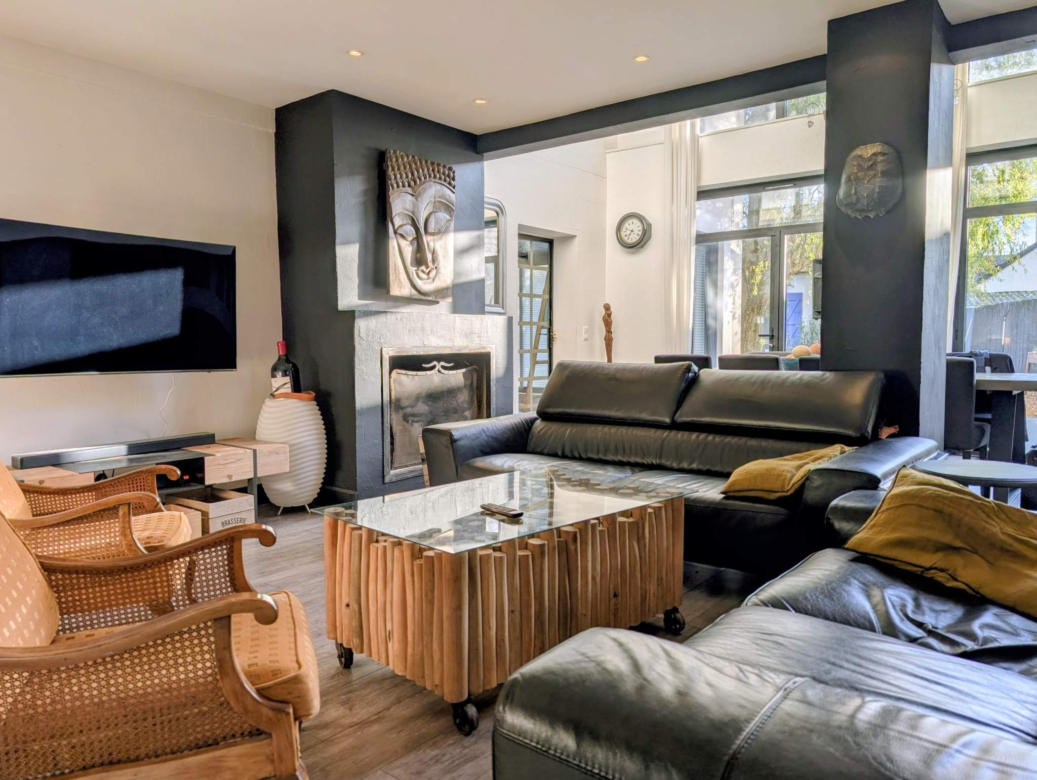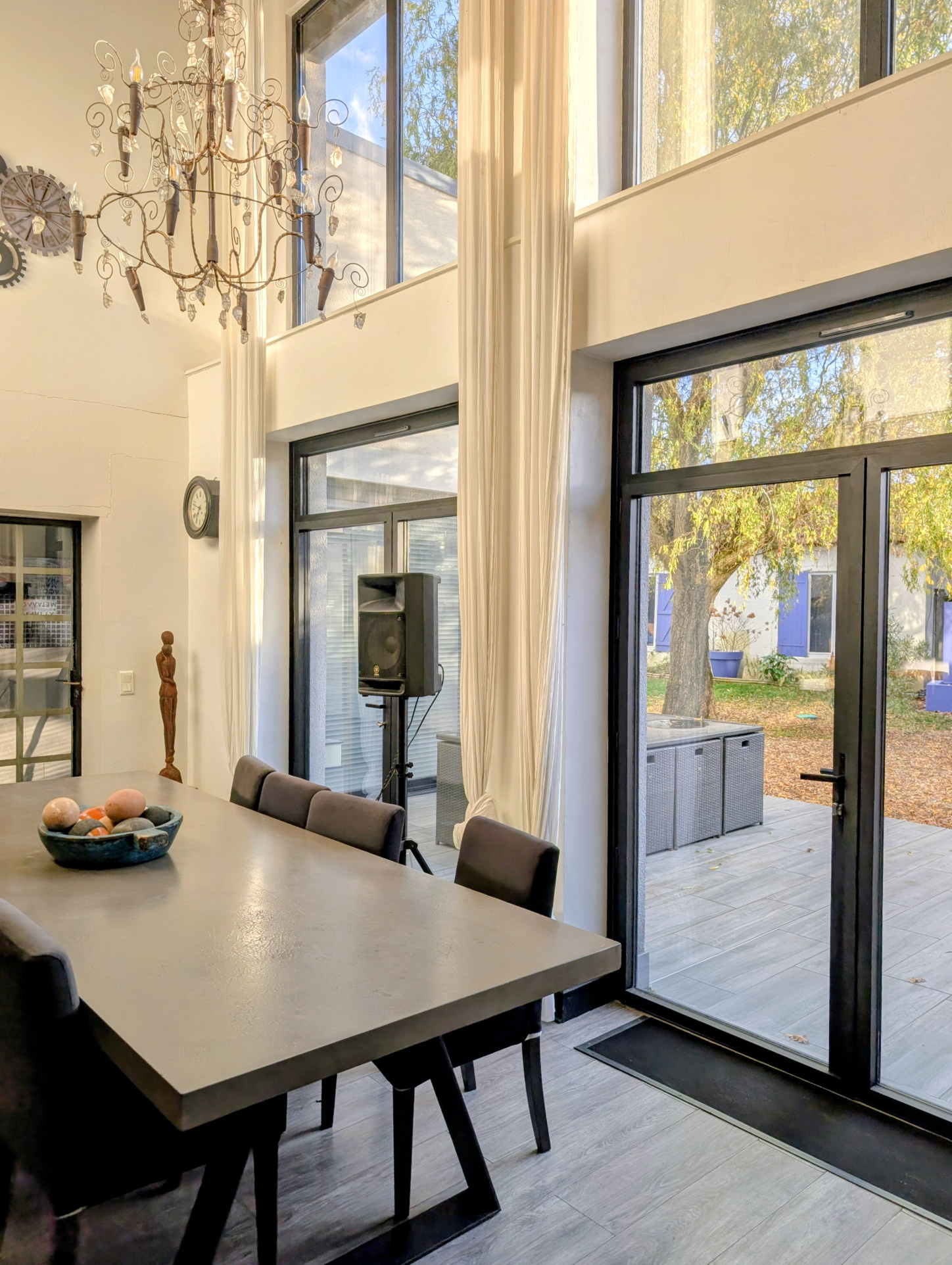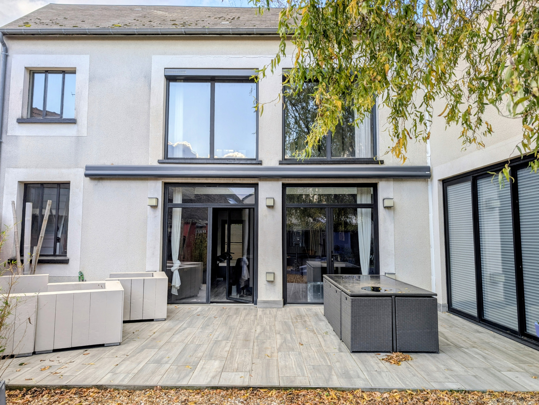 Sur la commune de St Jean de la Ruelle, cette maison a bénéficié d'une très belle réalisation lui conférant un architecture distinctive. Si vous souhaitez un bien qui ne ressemble pas aux autres, vous serez charmé par cette maison rénovée dans un style contemporain avec des références industrielles. Par ses grandes ouvertures, depuis le séjour et la piscine intérieure, la lumière transperce tout l'intérieur. Elle est composée par ailleurs, d'une cuisine contemporairne partiellement ouverte sur la pièce de vie, la pièce piscine, une autre pièce de réception équipée en sononrisation. Au premier étage, dominant le séjour cathédrale, un palier, une charmante salle de bains, un bureau et une chambre. Au deuxième étage on retrouve deux chambres et un bureau. La proprété comprend également de l'autre côté du jardin paysagé, une dépendance. Les informations sur les risques auxquels ce bien est exposé sont disponibles sur le site Géorisques : www.georisques.gouv.fr. Honoraires de 4 % à la charge de l'acquéreur. Gilles Dresch 06.22.85.04.86 cabinetderocquigny.com