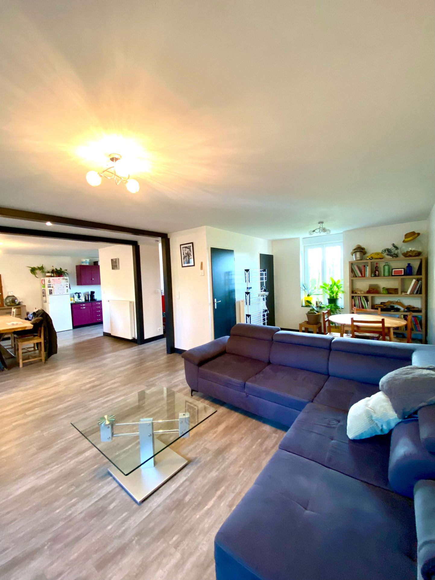 - RDC : entrée sur pièce de vie spacieuse : cuisine ouverte sur salon / séjour (total environ 58 m2), wc