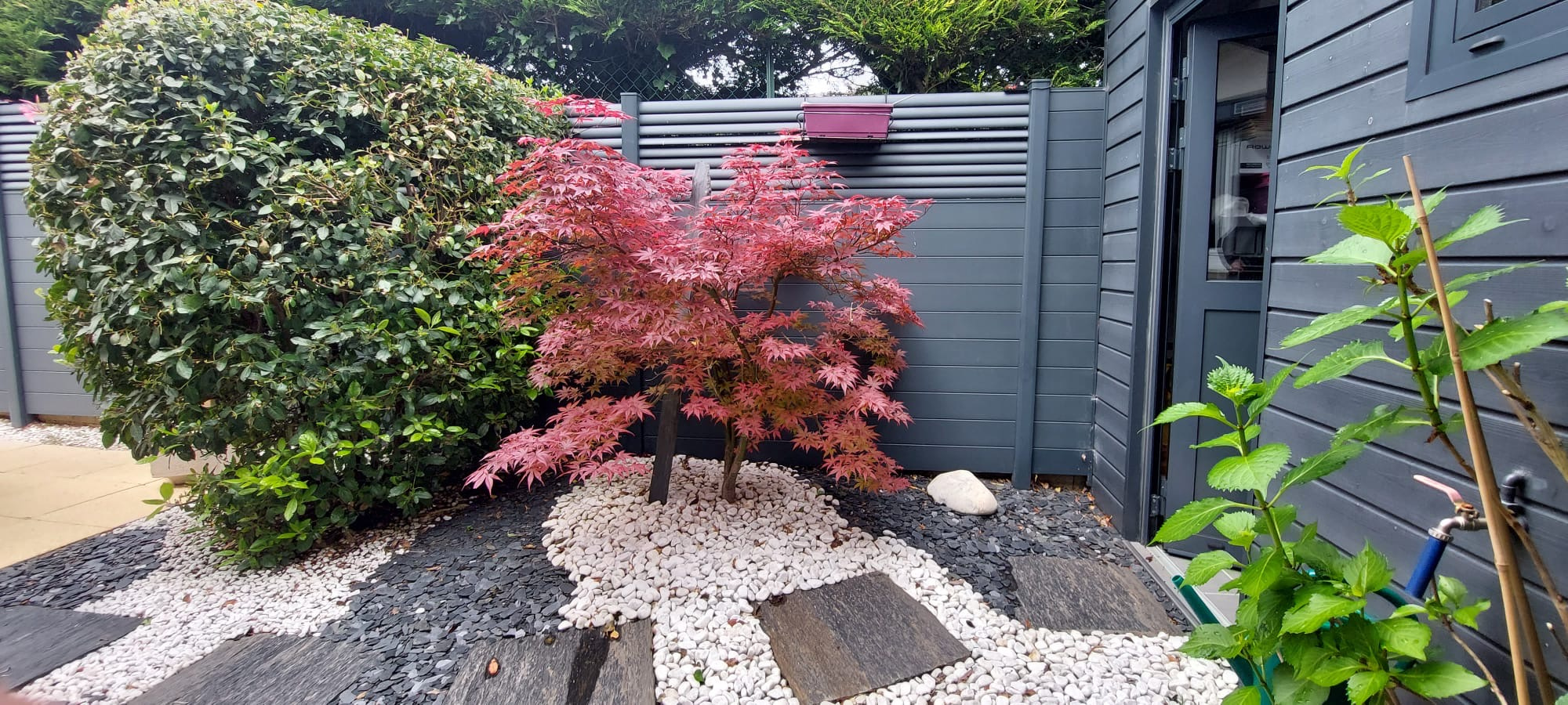 Le terrain aménagé au style japonisant est parfaitement entretenu et n'offre pas de vis à vis