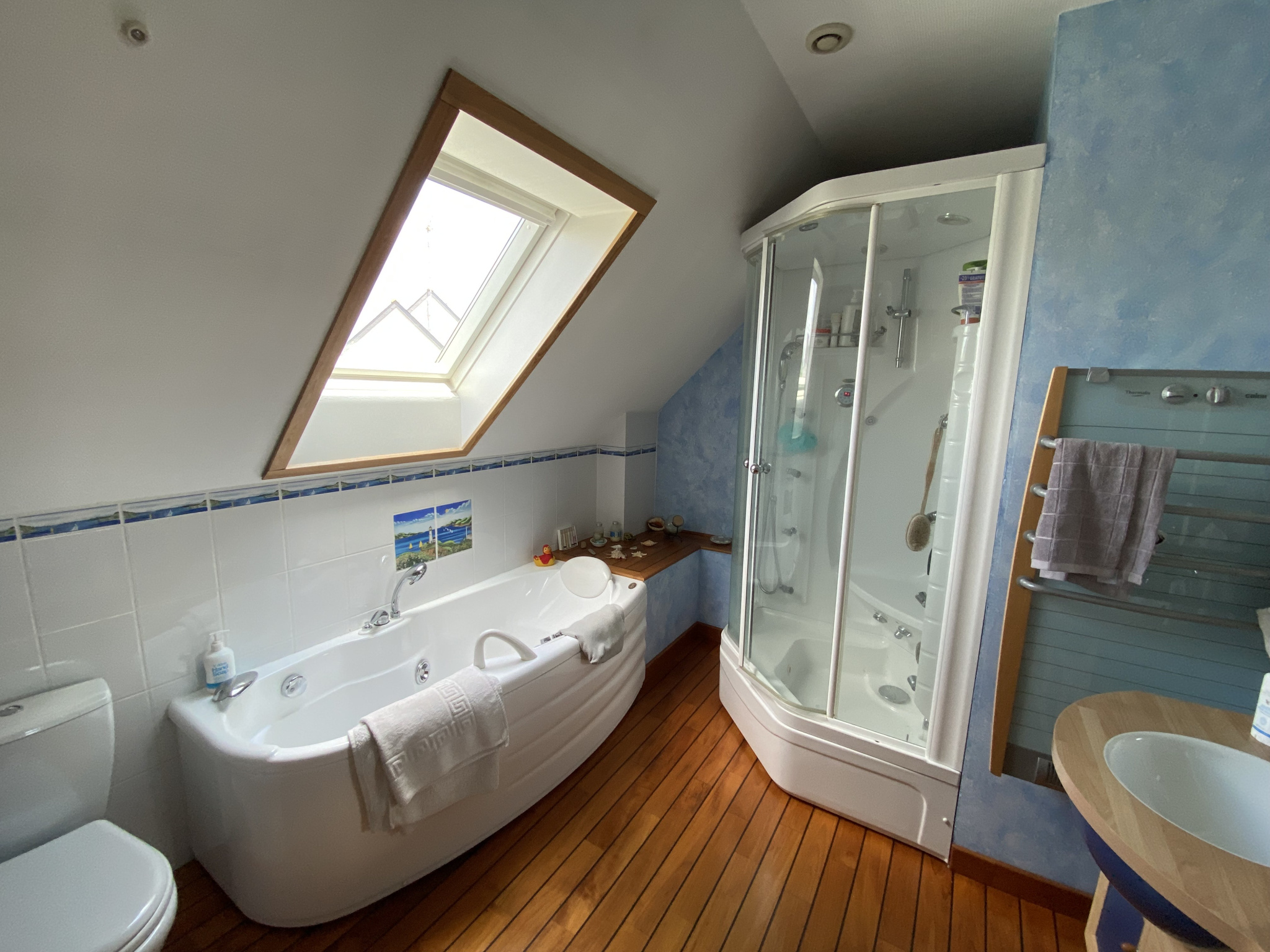 L'étage s'organise autour d'une grande mezzanine qui dessert une suite parentale avec un dressing digne de ce nom et une salle de bains avec baignoire balnéo et douche à découvrir .... Deux autres chambres avec des rangements intégrés. Une deuxième salle de bains et des toilettes séparées complètent l'espace nuit.