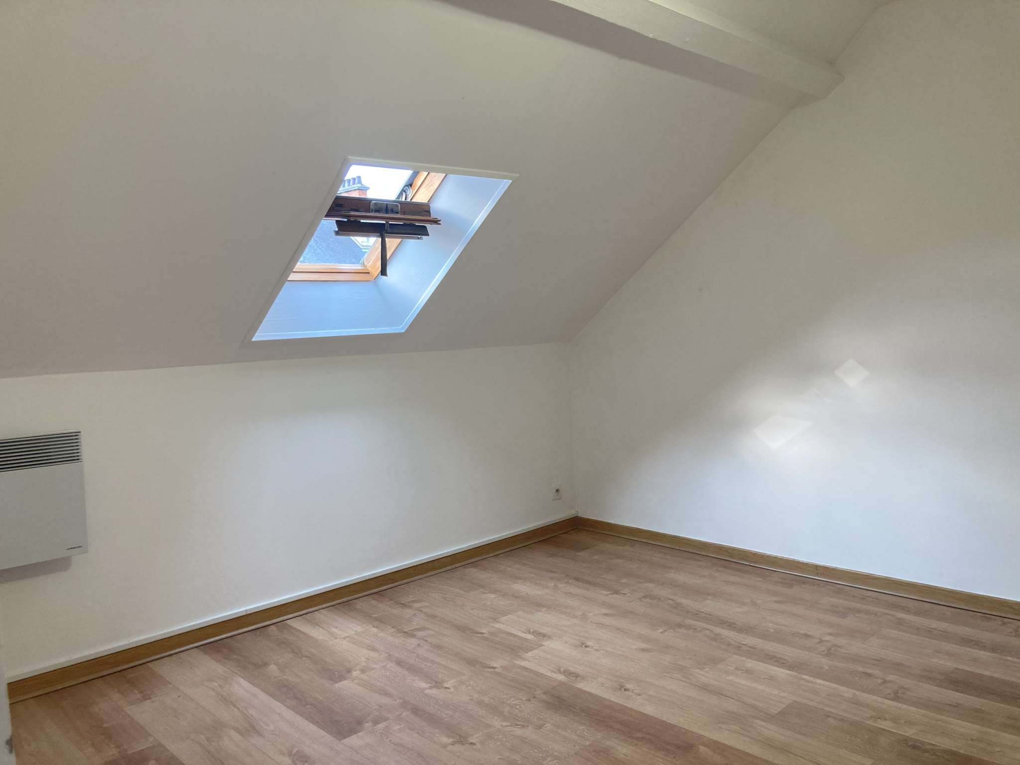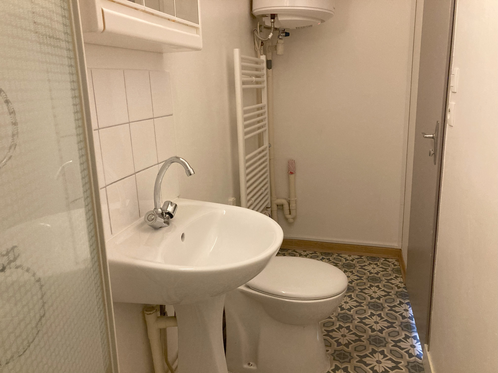Il se compose d'une pièce à vivre de 15 m2 environ avec un coin kitchenette et une fenêtre, une chambre de 10 m2 avec un velux, une salle d'eau avec douche, lavabo et WC broyeur.